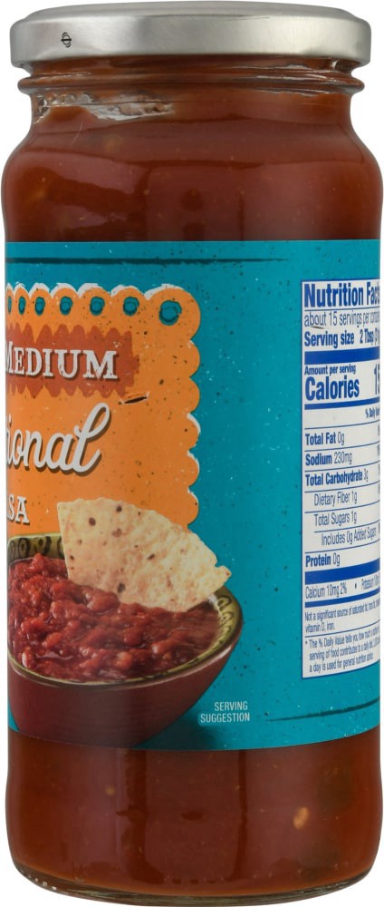 Per 2 Tbsp: 10 Calories, 0g Sat Fat, 230mg Sodium, 1g Sugars