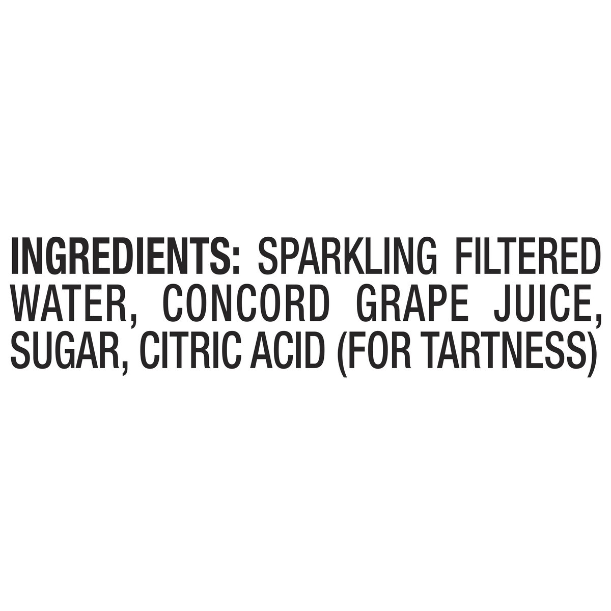 Sparkling Filtered Water, Concord Grape Juice, Sugar, Citric Acid (for Tartness).