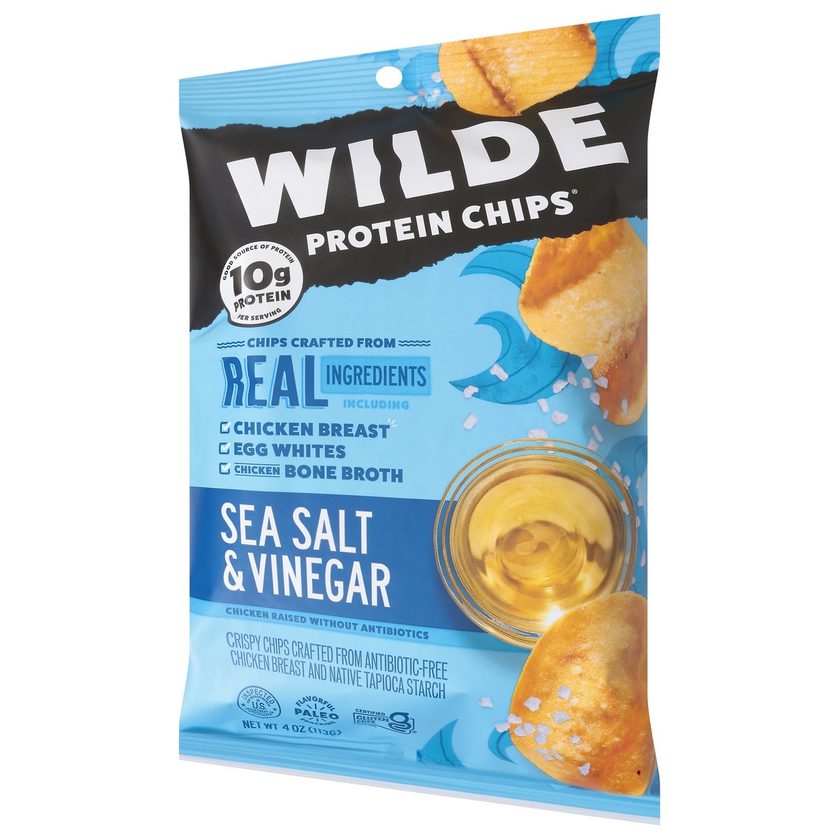 A classic potato chip flavor, without the potatoes. With 10g of protein from real ingredients like antibiotic-free chicken breast, egg whites and bone broth, WILDE Sea Salt & Vinegar Protein Chips are…