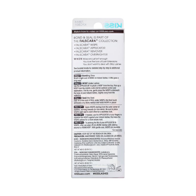 - Bond and Seal comes in a double sided tube, 9.0 g (0.29 oz.) with a 2-tipped brush-on applicator; includes Biotin infused non-damaging Bond (0.15 oz.) to prime & prep your lashes, and Vitamin E formulated Seal (0.14 oz.) to remove any tacky residue & lock the wisps in place for all-day wear