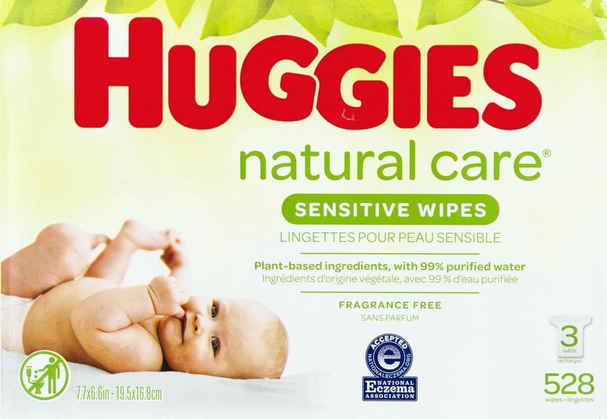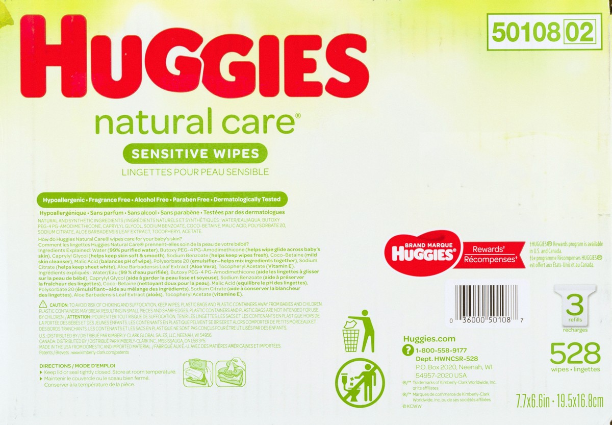 - 3 refill packs of 176 Huggies Natural Care Sensitive Baby Wipes