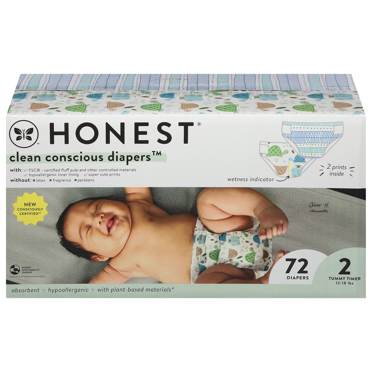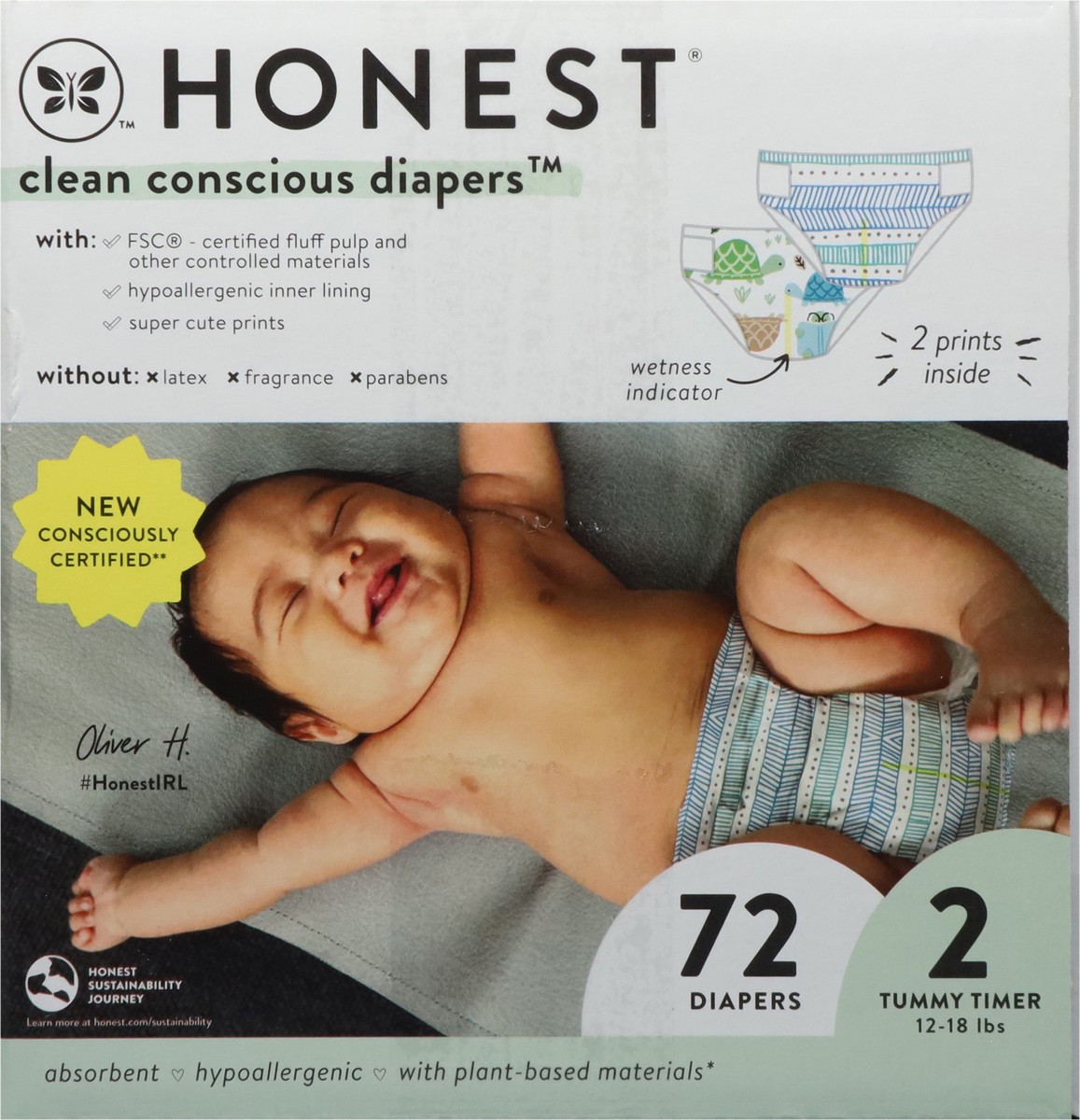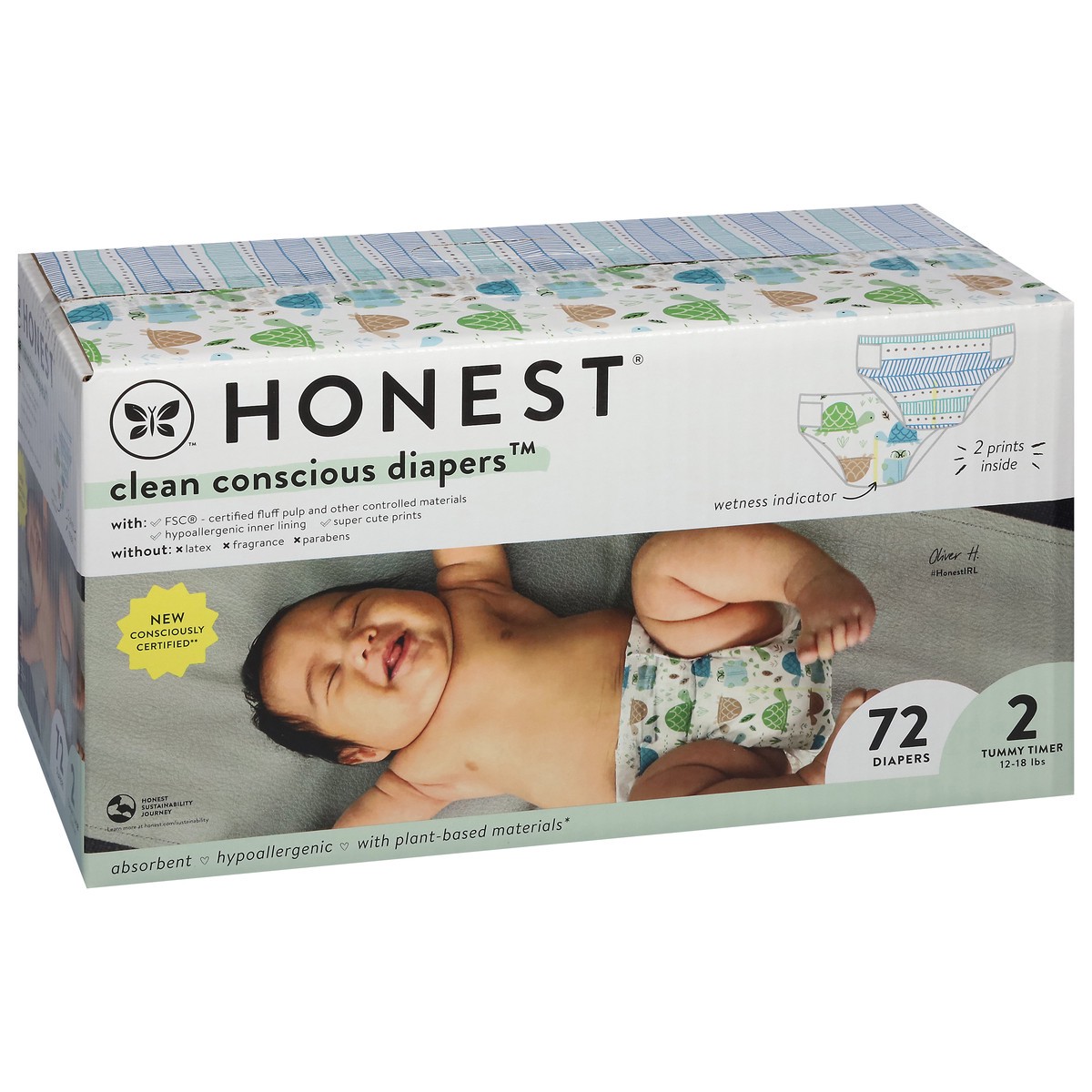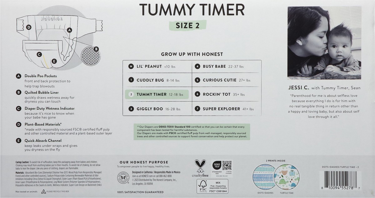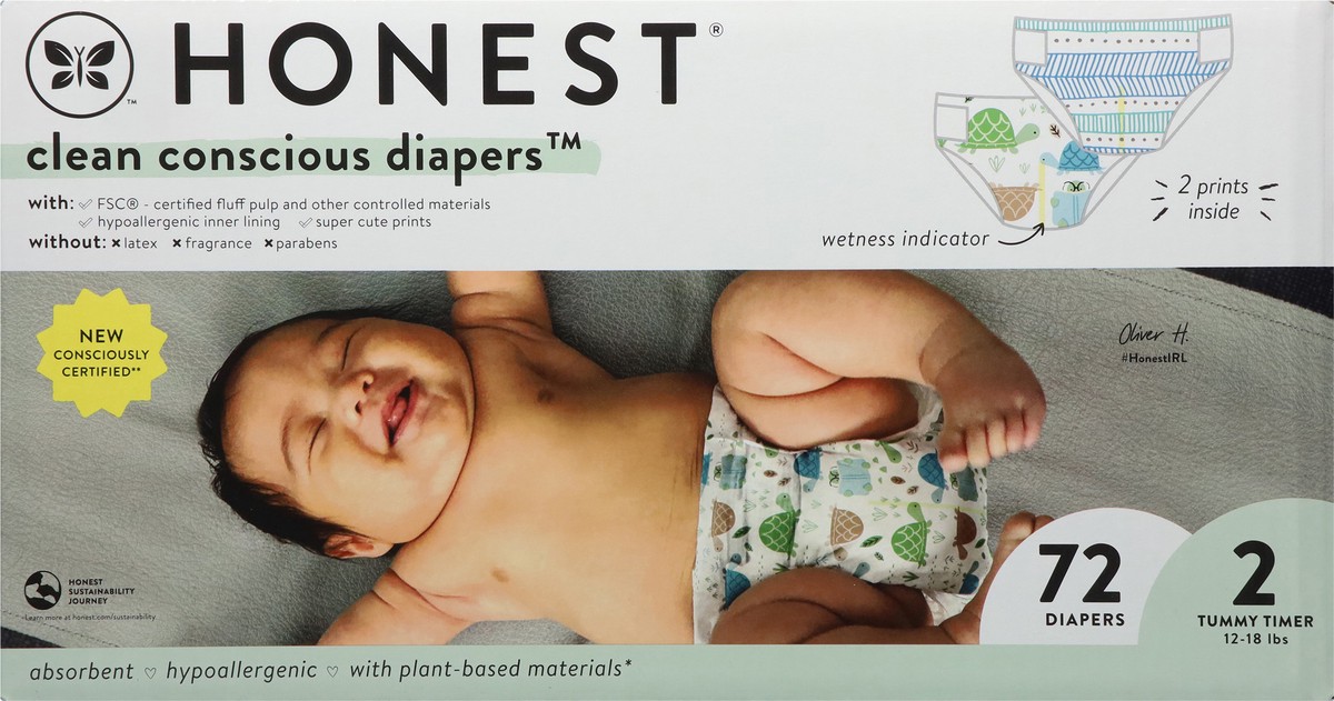Honest Clean Conscious Diapers 2 Tummy Timer (12-18 lbs) Diapers Size 2 72 ea