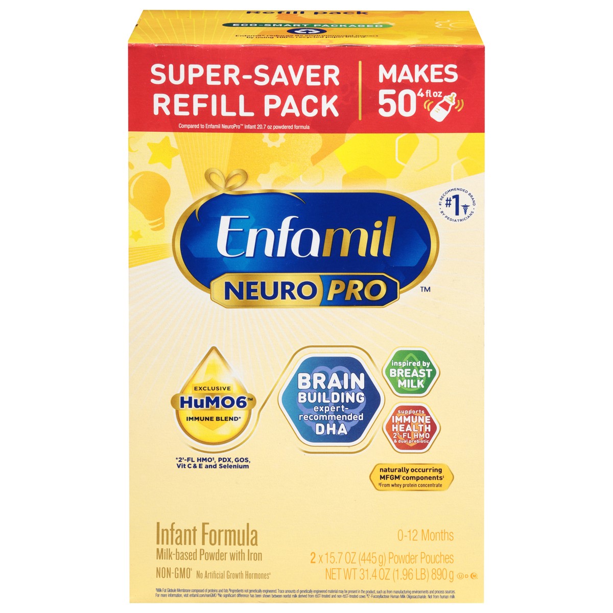 Enfamil NeuroPro 0-12 Months Milk-Based Powder with Iron Infant Formula 2 - 15.7 oz Pouches
