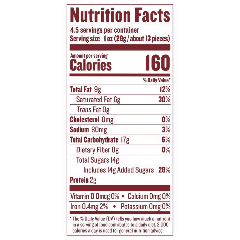 Peanut Butter Coating (Cane Sugar, Palm Kernel Oil, Peanut Flour, Peanut Butter [Ground Peanuts], Rice Starch, Sea Salt, Soy Lecithin), Dark Chocolate (Cacao Beans*, Evaporated Cane Sugar, Cocoa Butte…