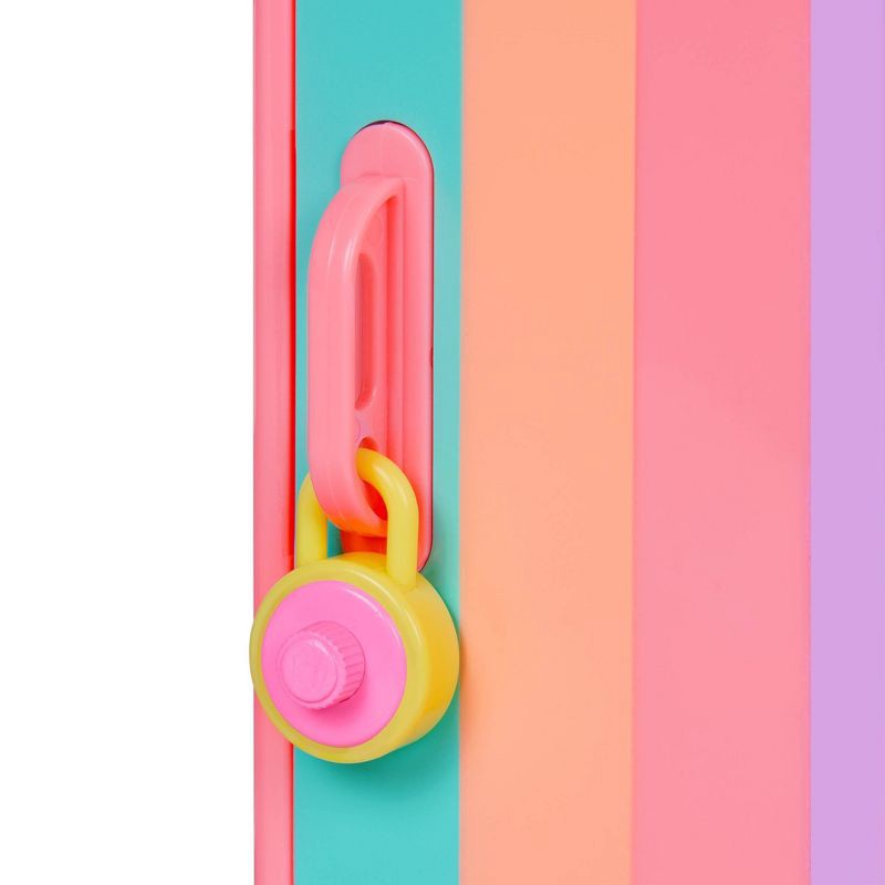 - Stylish locker: Multicolor locker comes with a stick-on pencil holder, a lightning bolt mirror, a removable lock, stickers, a juice box, and more.