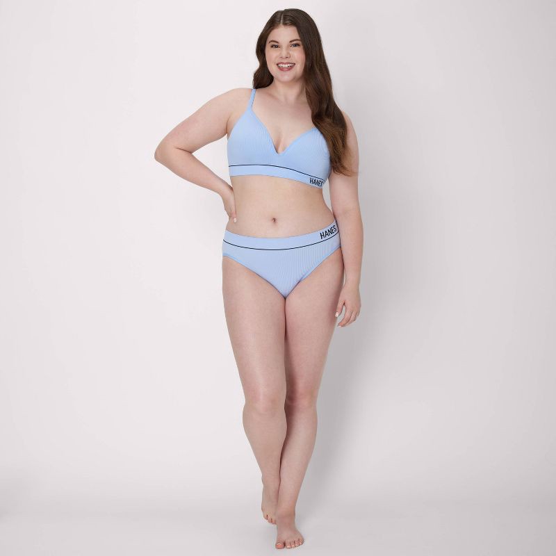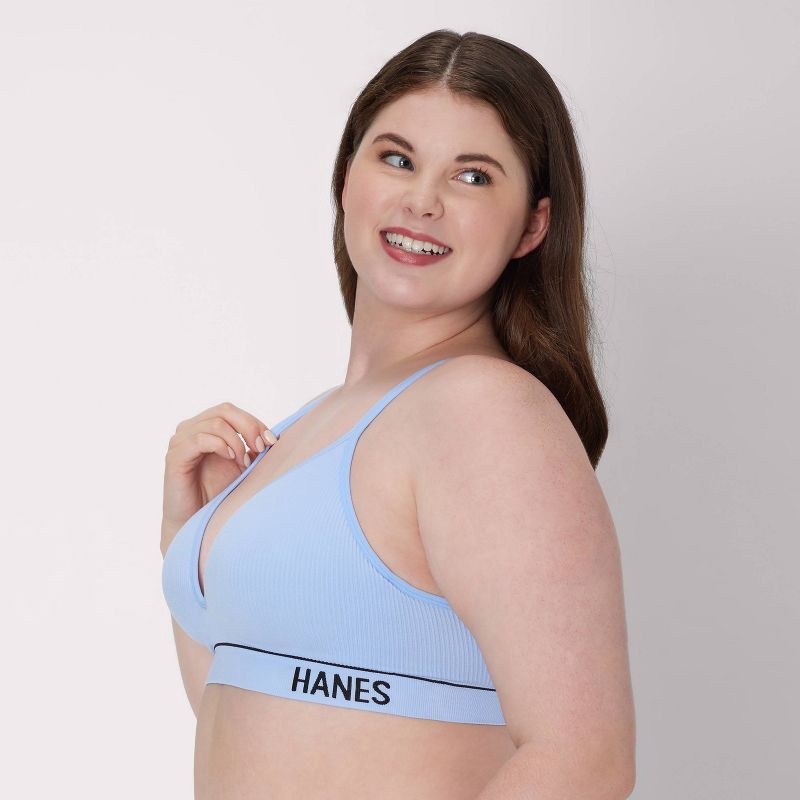 Hanes Originals Women's Ribbed Seamless Contour Bra MHB004 - Sky Blue XL: Nylon-Spandex Blend, Adjustable Straps, Medium Coverage