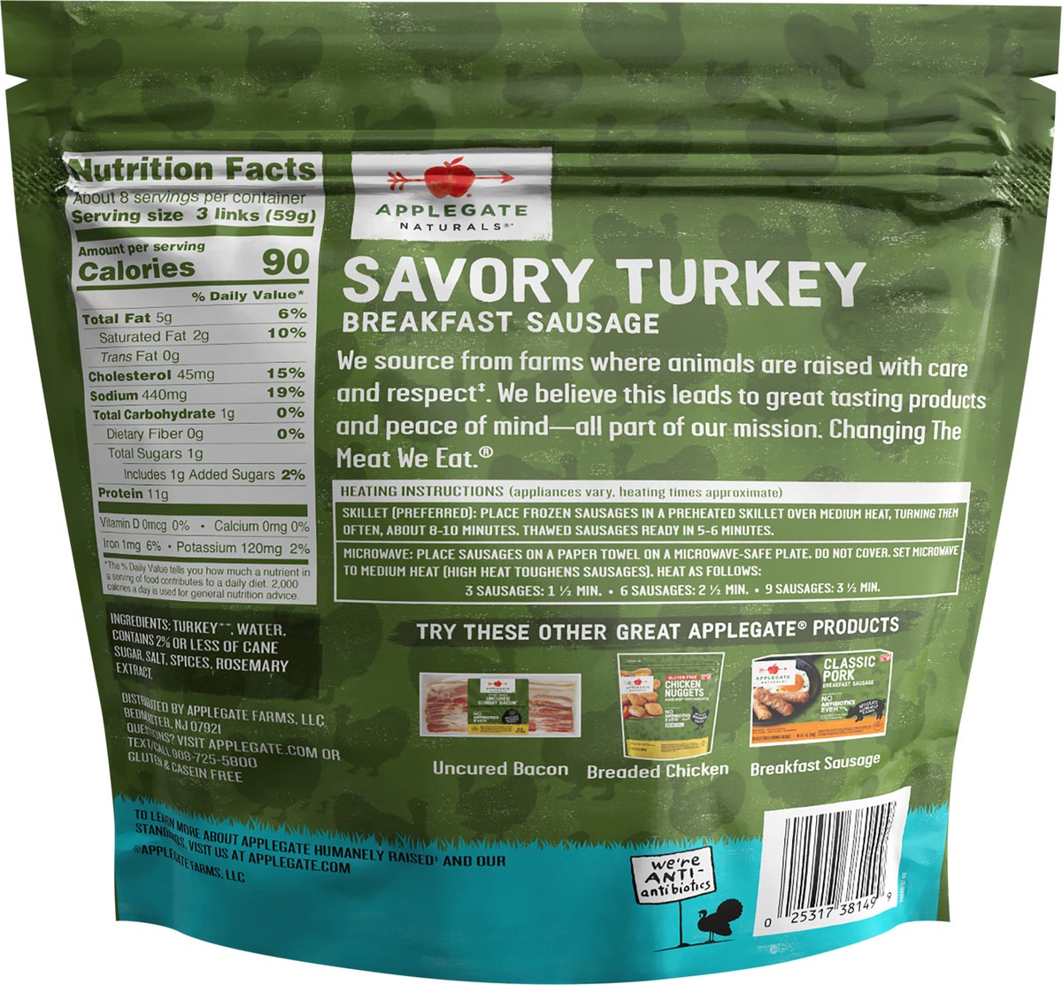 Applegate Naturals Savory Turkey Breakfast Sausage 16 oz