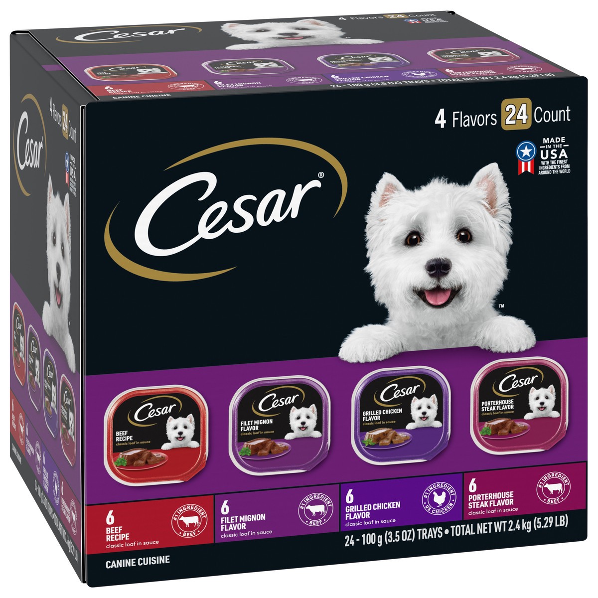 Cesar Classic Loaf in Sauce 4 Flavors Canine Cuisine Tray 24 - 3.5 oz ea