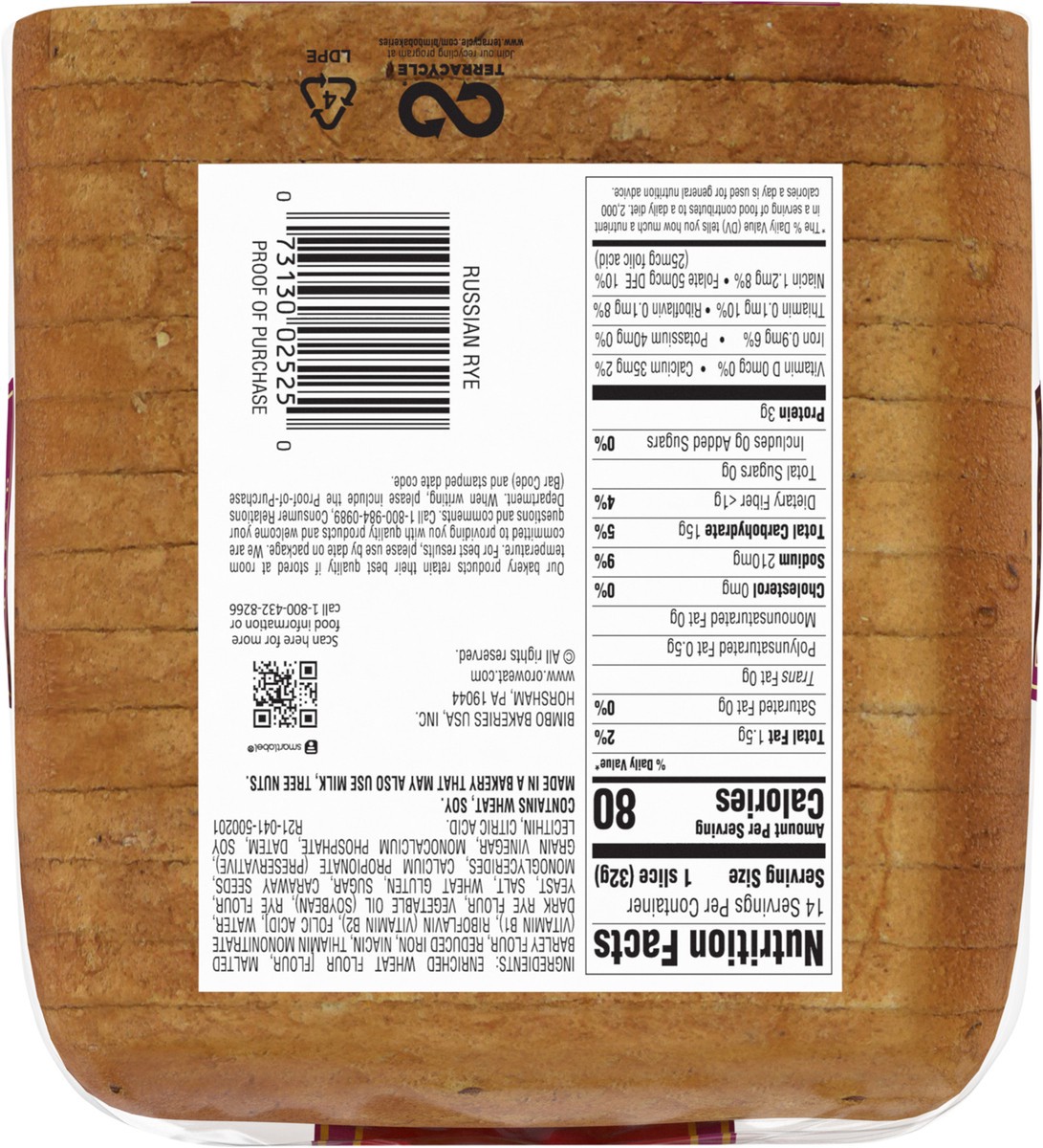 OROWEAT RUSSIAN RYE BREAD 16OZ