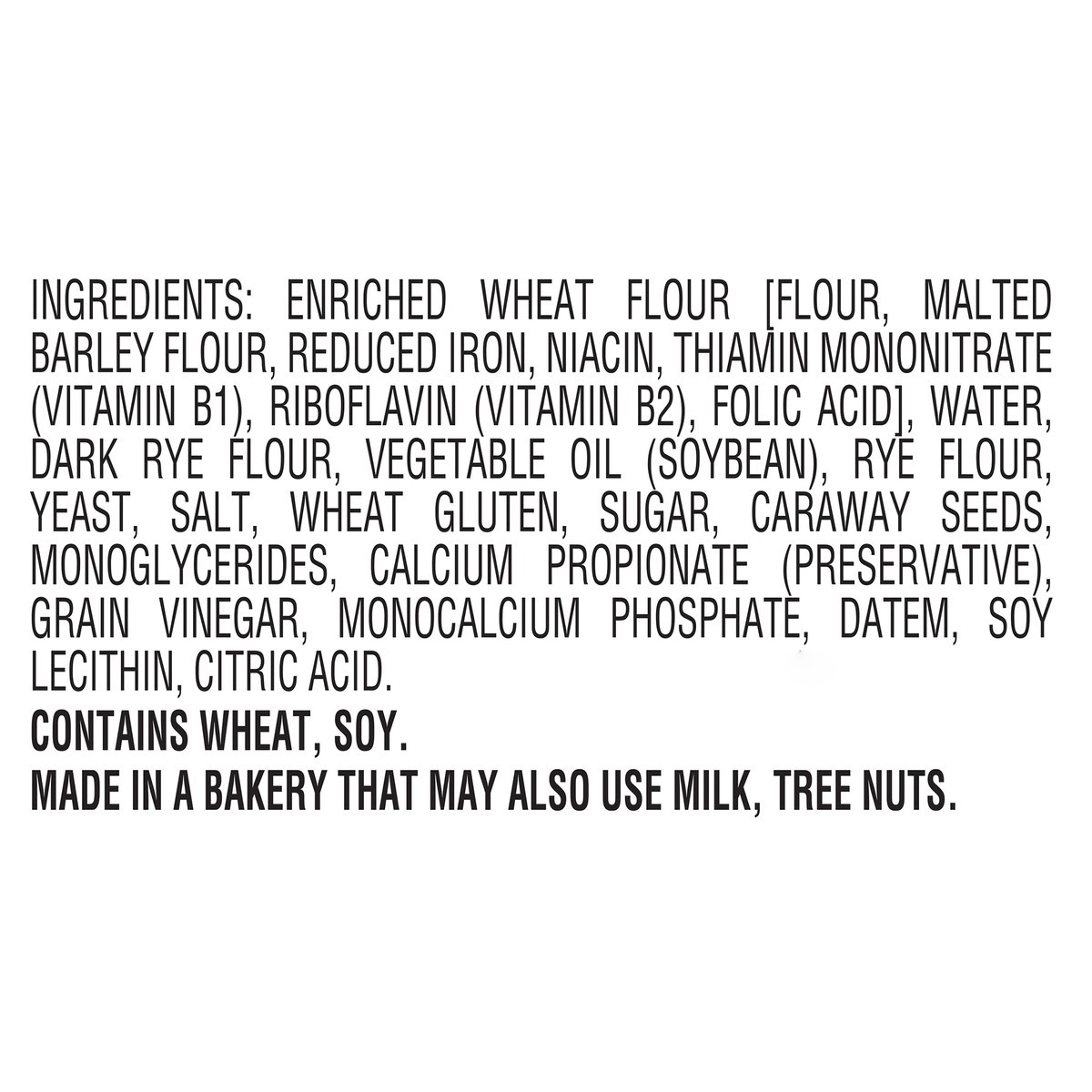 Enriched Wheat Flour [Flour, Malted Barley Flour, Reduced Iron, Niacin, Thiamin Mononitrate (Vitamin B1), Riboflavin (Vitamin B2), Folic Acid], Water, Dark Rye Flour, Vegetable Oil (Soybean), Rye Flou…