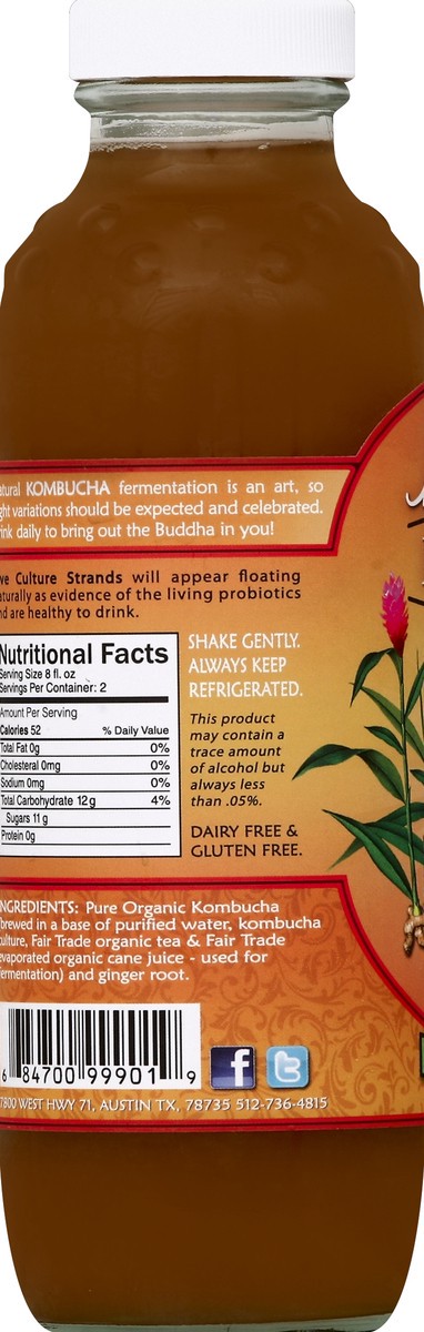 Craft brewed. Awaken your energy. With love from Austin, TX. Natural kombucha fermentation is an art, so slight variations should be expected and celebrated. Drink daily to bring out the Buddha in you…