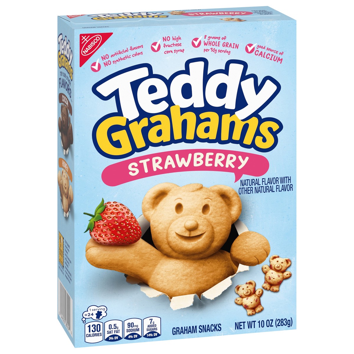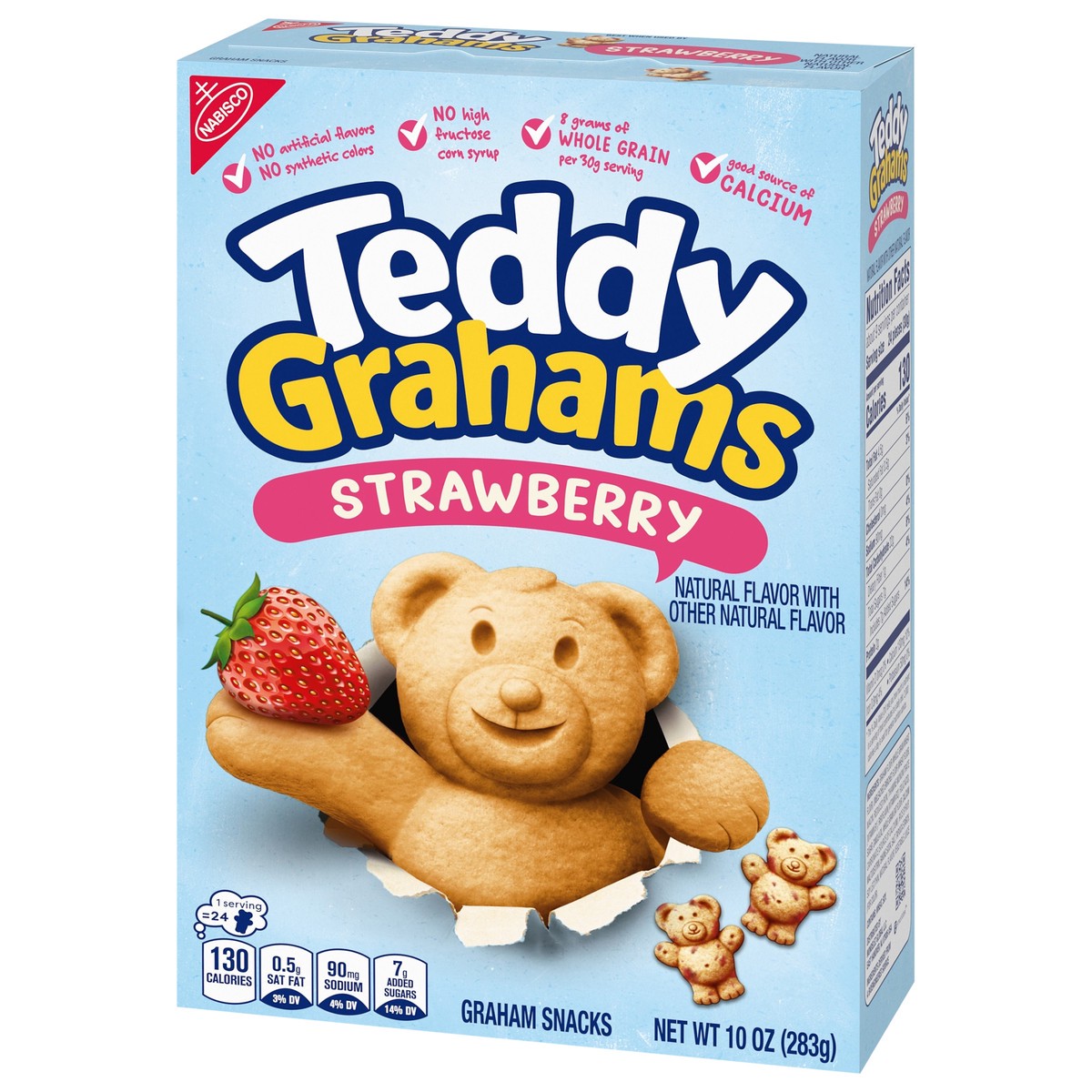 TEDDY GRAHAMS Strawberry Flavor Graham Snacks are lovable, bear-shaped crunchy snacks that are deliciously baked. Bring fun and discovery to snack time with these bite-sized graham snacks that are mad…