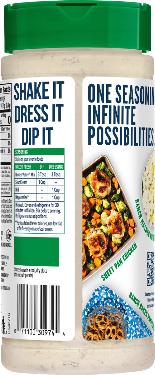 Spice up quick meals with Hidden Valley Original Ranch Seasoning Dressing and Dip Mix. Made with a pre-portioned blend of zesty herbs and spices, this versatile ranch seasoning mix has endless culinar…