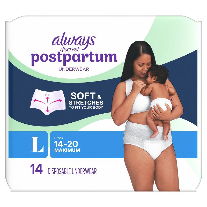 Always Discreet Postpartum Underwear Maxi Pad - Large - 14ct: Maximum Absorbency, Incontinence Protection, Waist Size 38-50