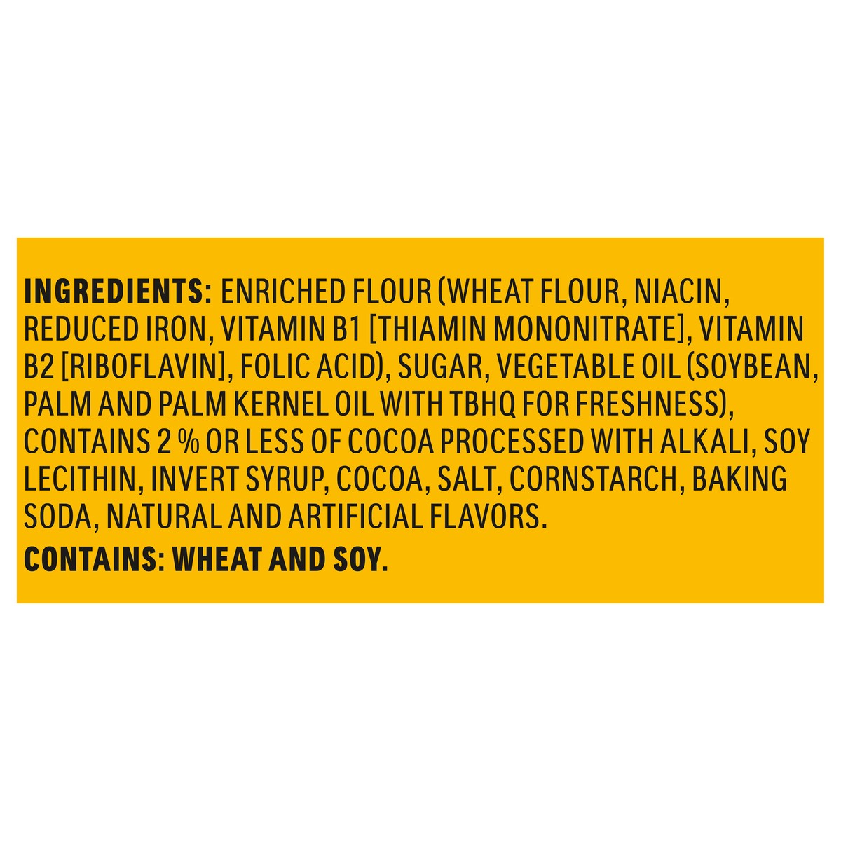 Enriched Flour (Wheat Flour, Niacin, Reduced Iron, Vitamin B1 [Thiamin Mononitrate), Vitamin B2 [Riboflavin], Folic Acid), Sugar, Vegetable Oil (Soybean, Palm and Palm Kernel Oil with TBHQ for Freshne…