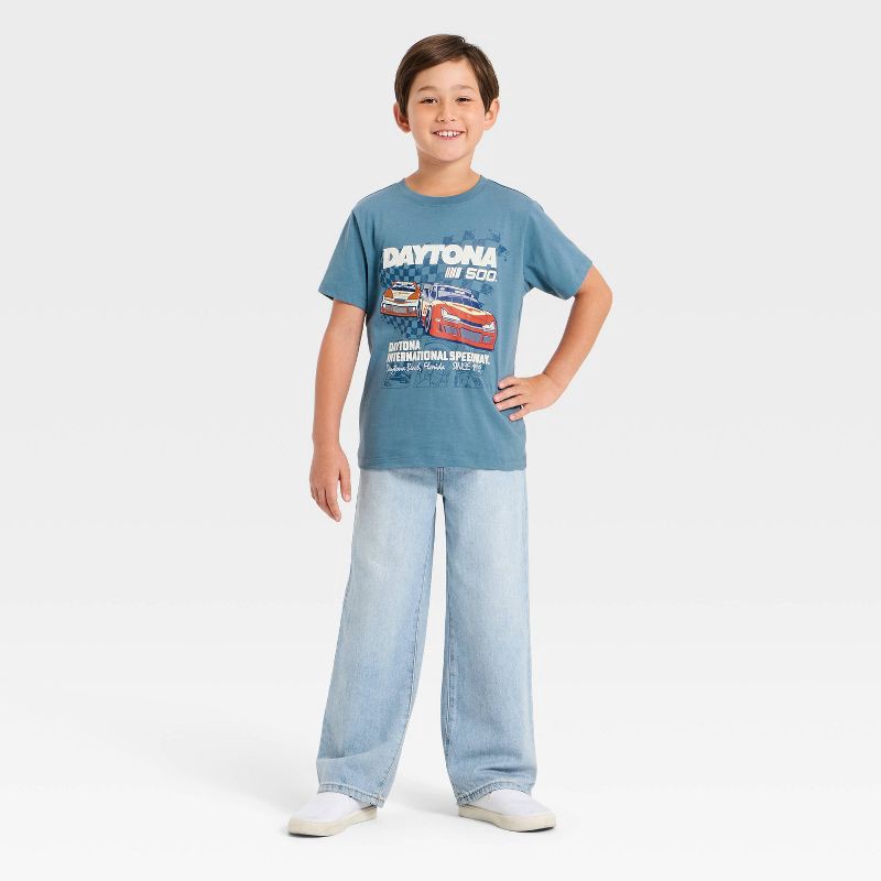 Bring race-day energy to his everyday wardrobe with this Boys' NASCAR Daytona Race Graphic T-Shirt. Made from soft, breathable fabric, it keeps him comfortable for school, playtime, or weekend fun. Th…