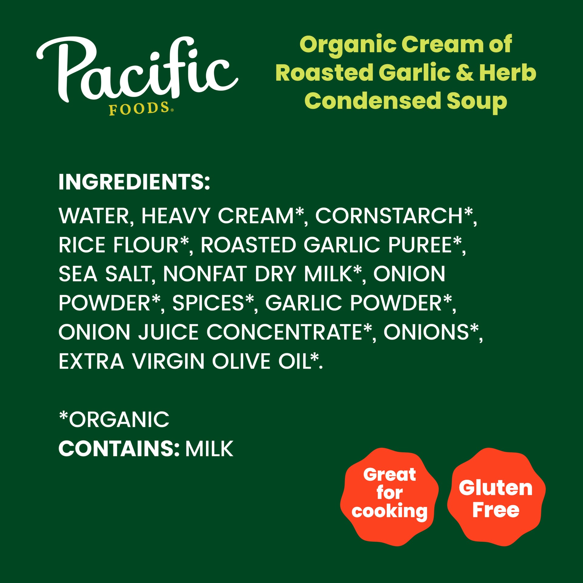 Effortlessly craft extraordinary meals with Pacific Foods Organic Condensed Cream of Roasted Garlic and Herb Soup. This vegetarian soup is made with a savory blend of roasted garlic, herbs and cream f…