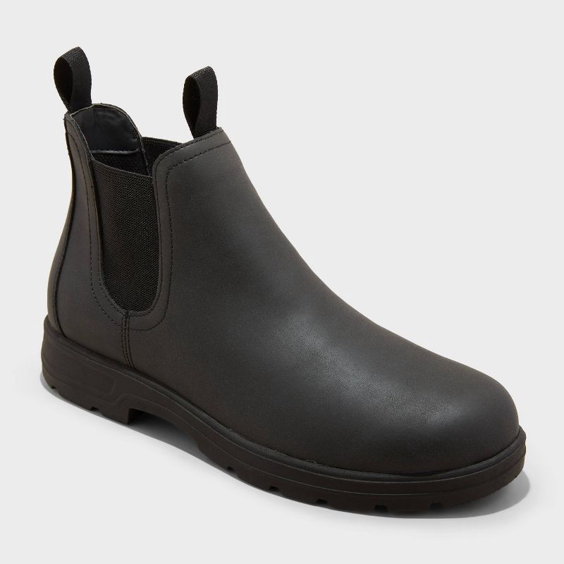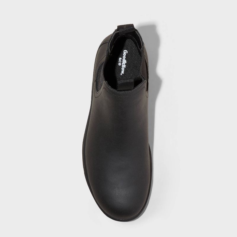 These Huxley Chelsea Boots from Goodfellow & Co™ are a perfect addition to your shoe wardrobe. The faux-leather design features a solid-color upper with a round closed toe, cushioned insole and medium…