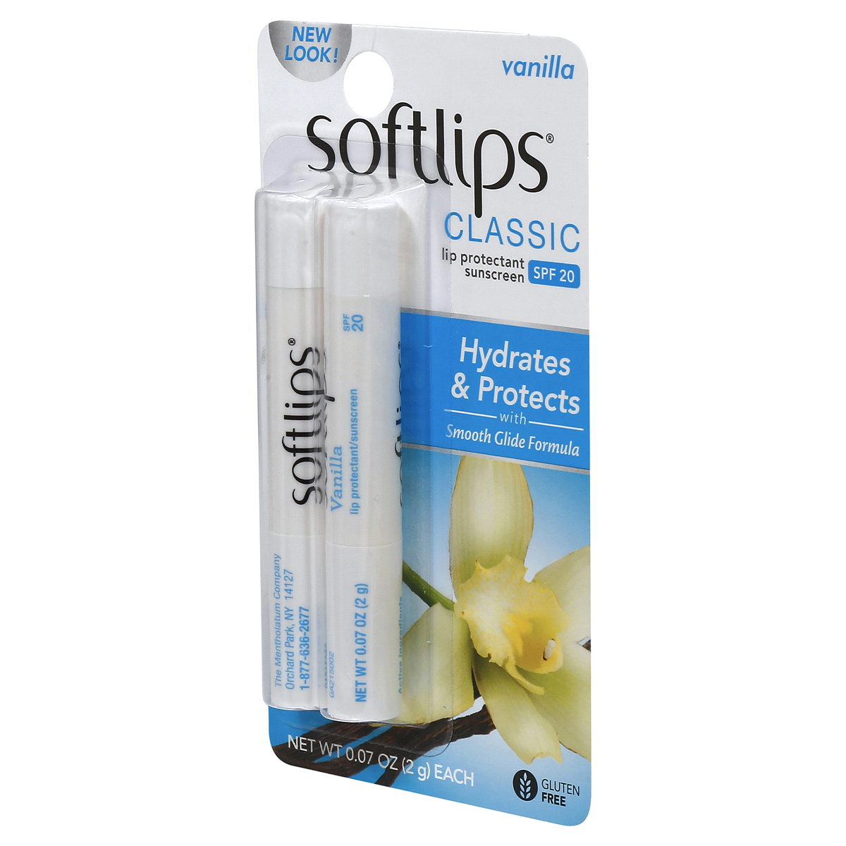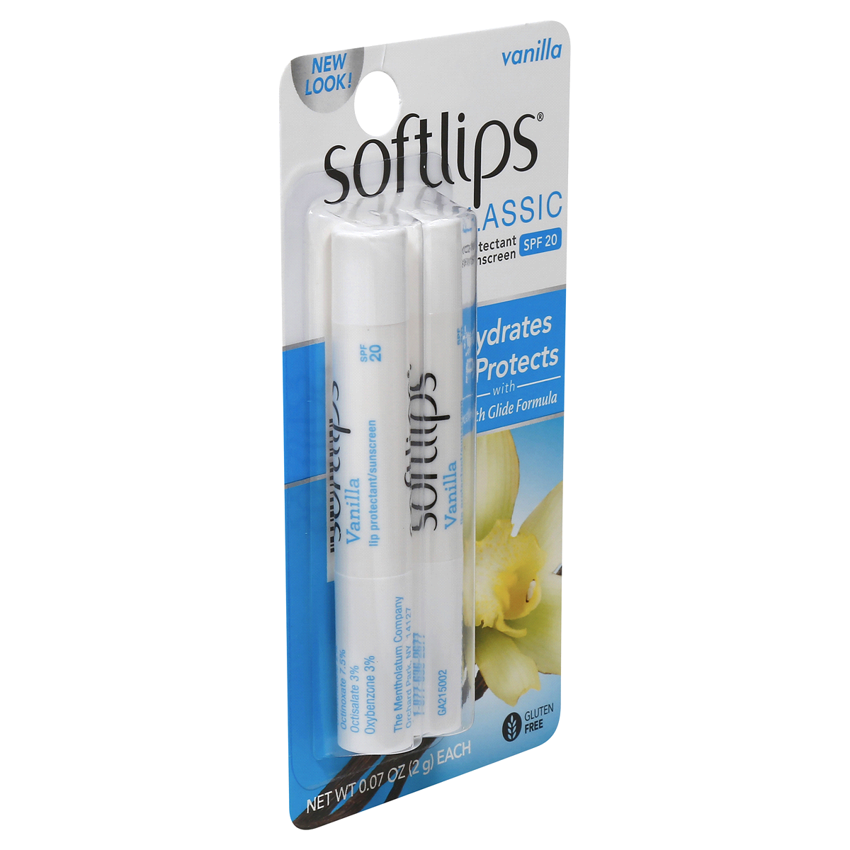 slide 1 of 5, Softlips Daily Lip Moisturizer For Very Dry Lips, Vanilla Flavored Lip Balm, SPF 20, Hydrates, Soothes & Prevents Dry, Chapped Lips, Smooth Glide Formula, Dermatologist Tested, Pack of 2 Chap Sticks, 2 ct