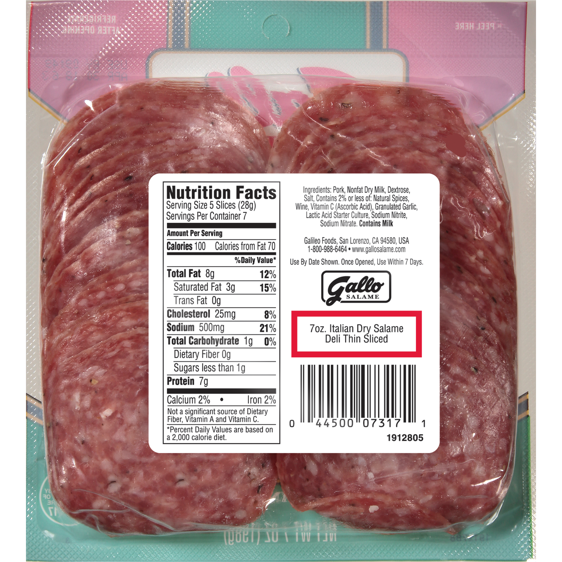 Gallo Salame Italian Dry Thin Sliced Deli Salame - 7 Oz
