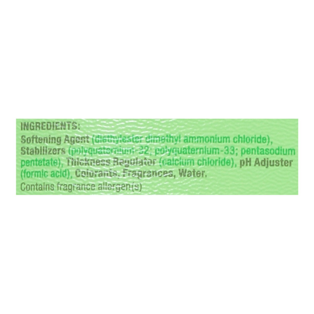 Softening Agent (Diethylester Dimethyl Ammonium Chloride), Stabilizers (Polyquaternium-32; Polyquaternium-33; Pentasodium Pentetate), Thickness Regulator (Calcium Chloride), pH Adjuster (Formic Acid),…