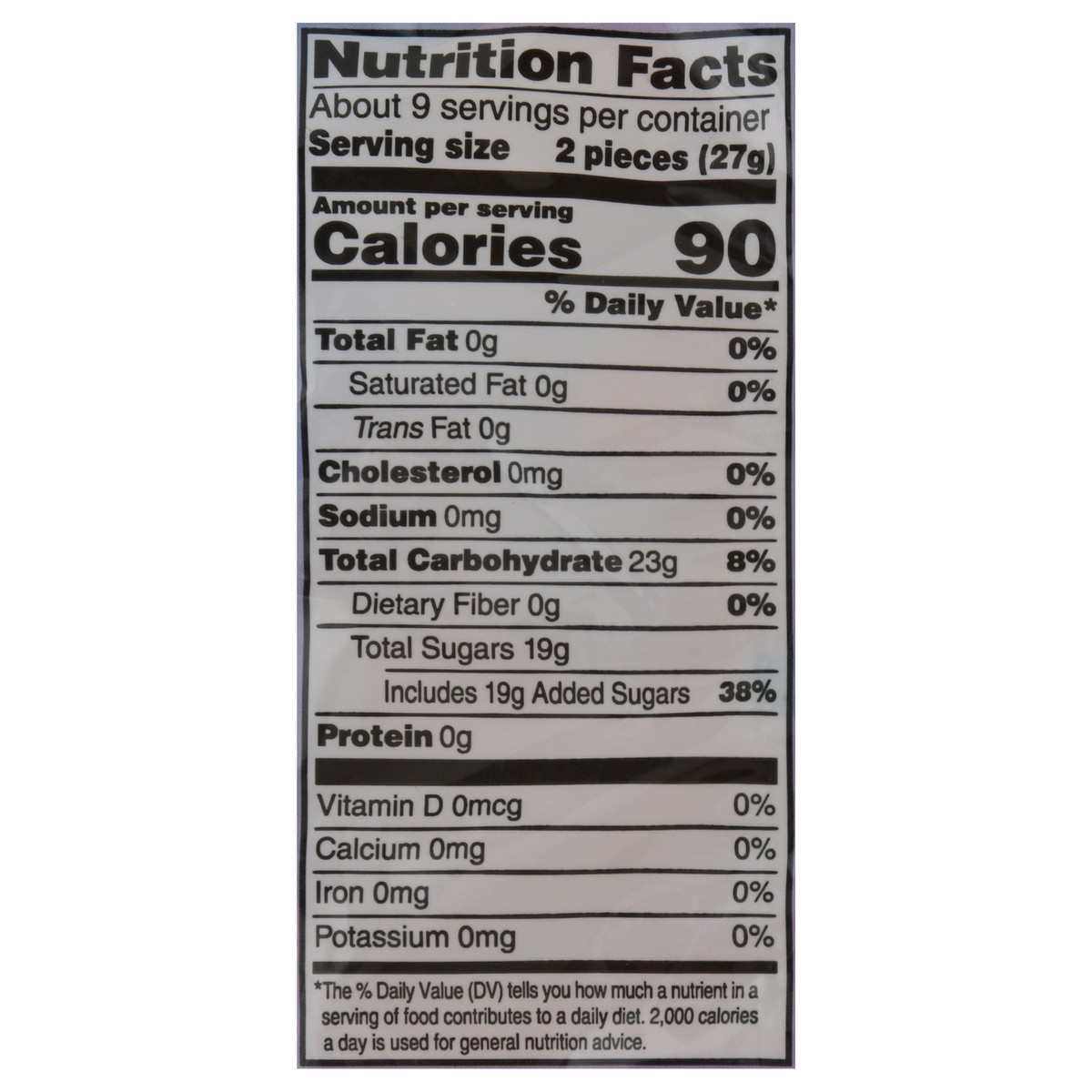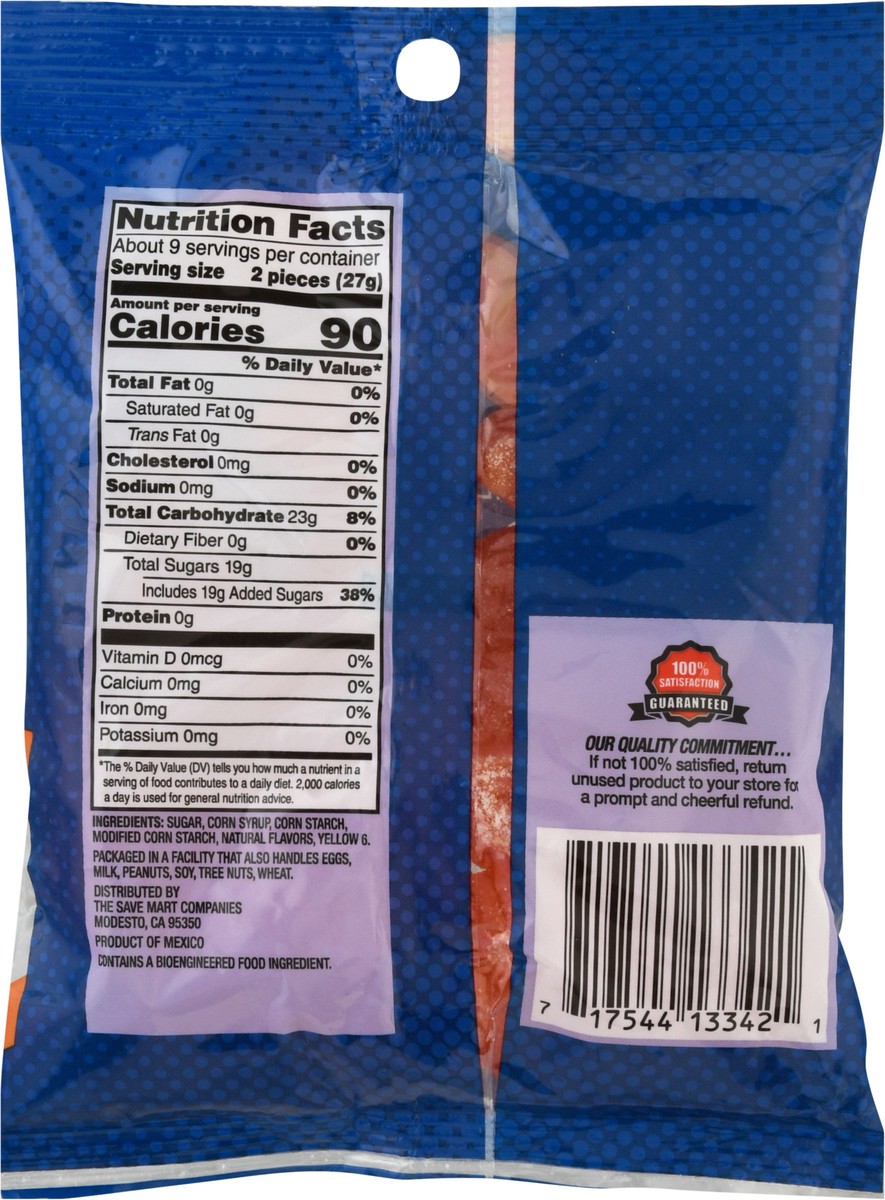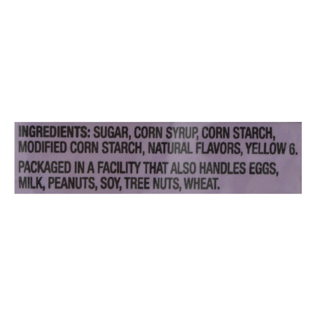 Sugar, Corn Syrup, Corn Starch, Modified Corn Starch, Natural Flavors, Yellow 6.