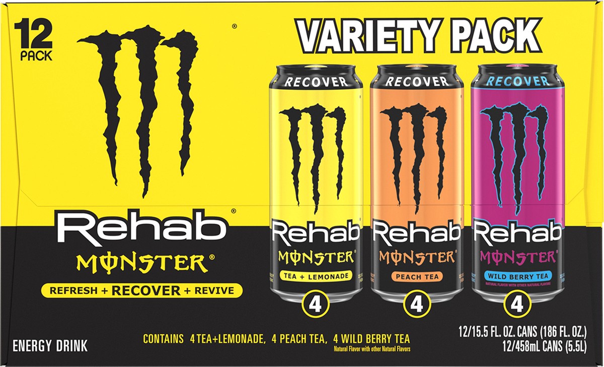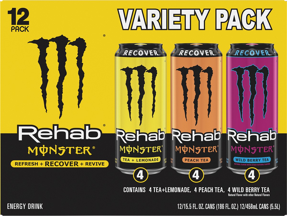 Monster Rehab Tea + Lemonade/Peach/Wild Berry Tea Energy Drink Variety Pack 12 - 15.5 fl oz Cans