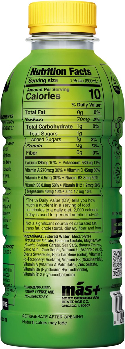 Mas+ by Messi Más+ by Messi Hydration Sports Drink Limón Lime League, 16.9 fl oz Bottle