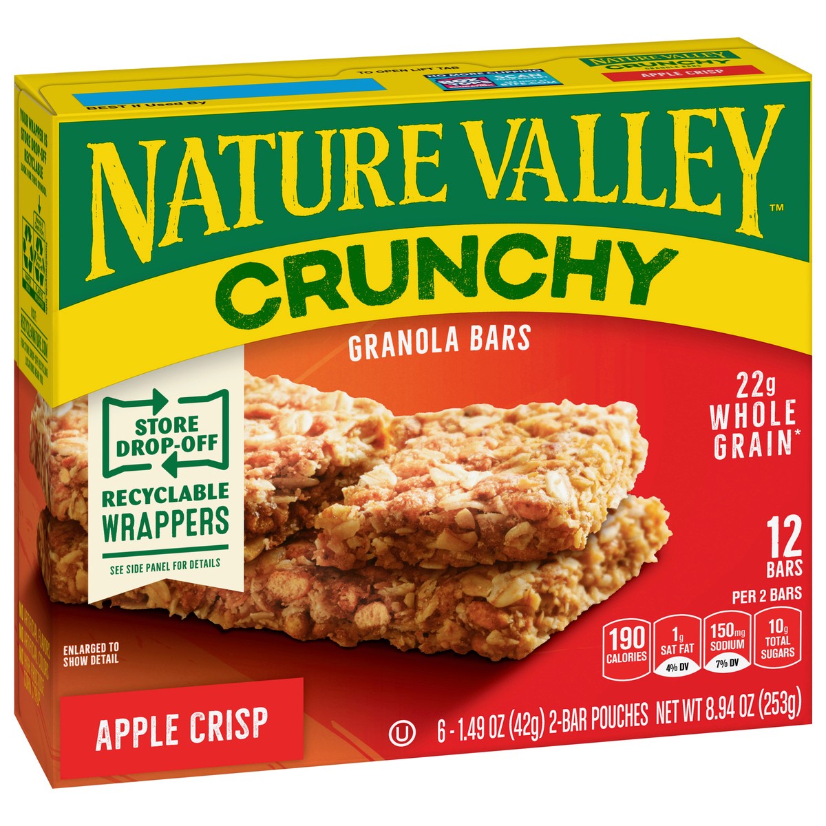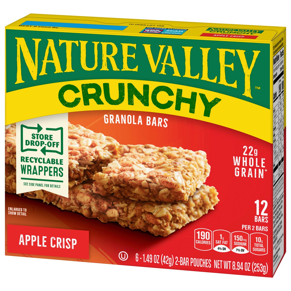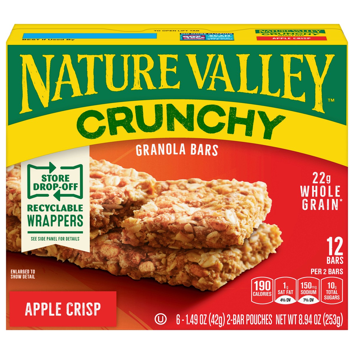 Nature Valley Crunchy Apple Crisp bars are a tasty snack made with real apples, cinnamon and whole grain oats. There are no artificial flavors, colors or sweeteners and they pack an excellent source o…