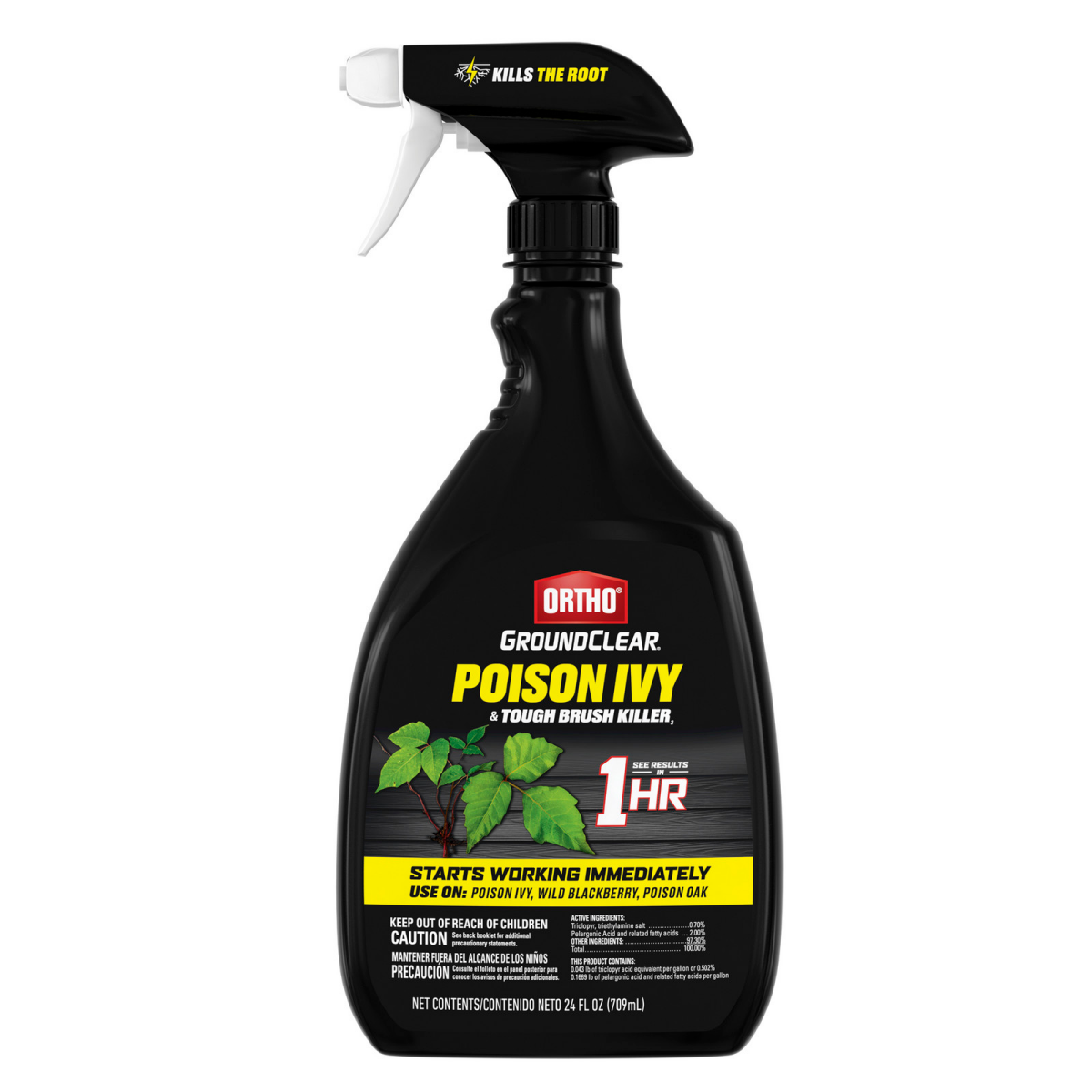 Ortho Ground Clear Poison Ivy and Tough Brush killer kills over 60 types of weeds and brush, including poison ivy, poison oak and wild blackberry. Also kills honeysuckle, kudzu, ragweeds, dandelion an…