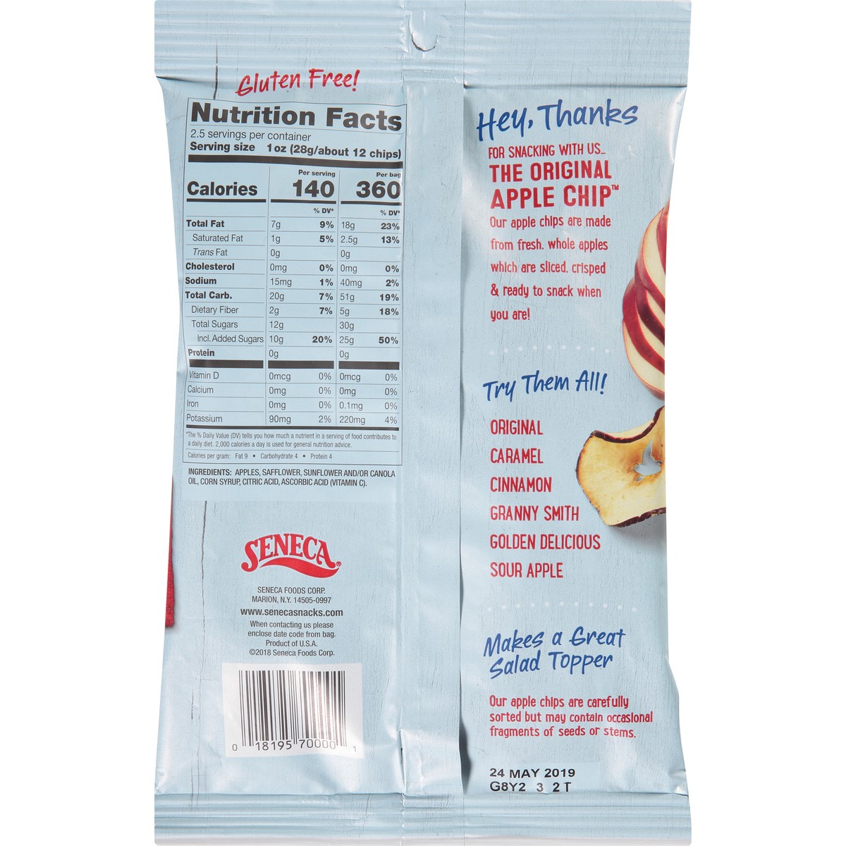 The original apple chip. Gluten free. Over 20 years of snacking. Yum! Visit our website www.senecasnacks.com. When contacting us please enclose date code from bag. Made from whole fresh apples - slice…