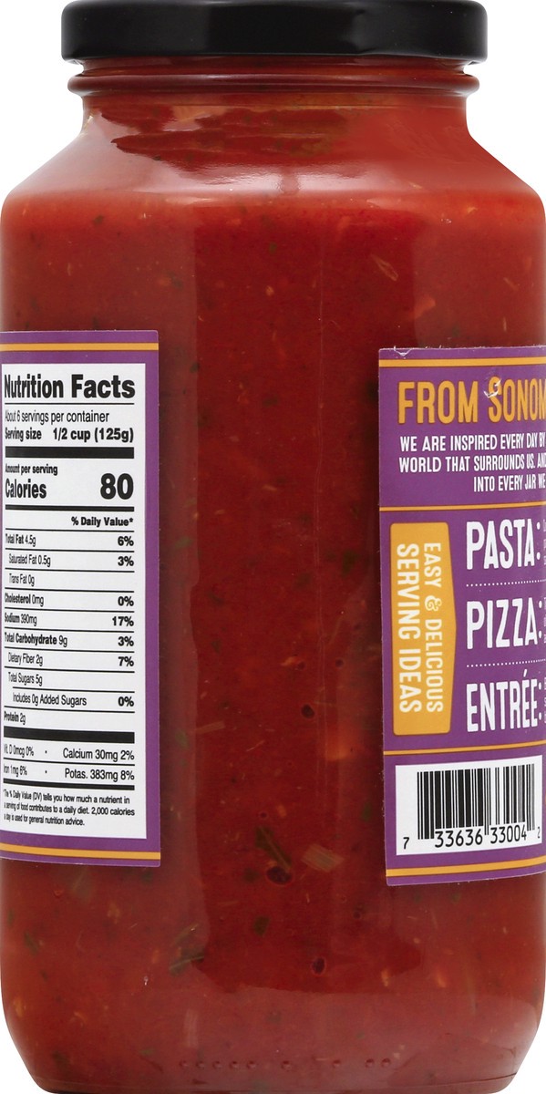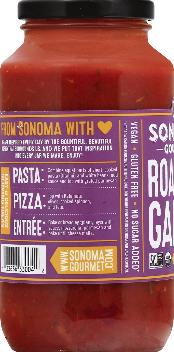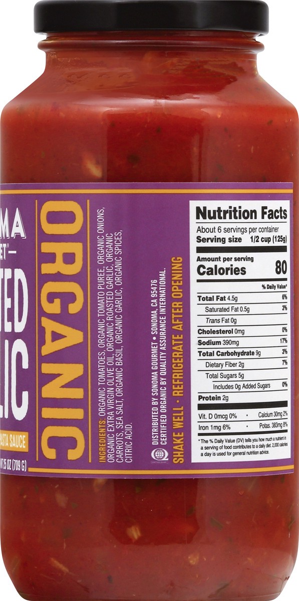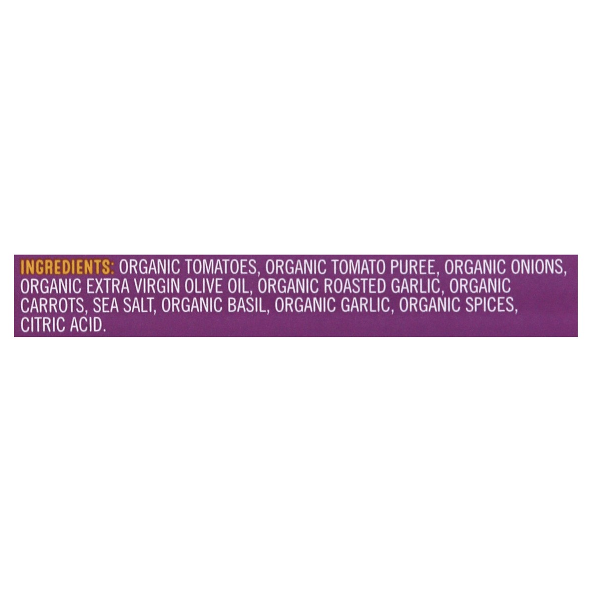 Organic Tomatoes, Organic Tomato Puree, Organic Onions, Organic Extra Virgin Olive Oil, Organic Roasted Garlic, Organic Carrots, Sea Salt, Organic Basil, Organic Garlic, Organic Spices, Citric Acid.