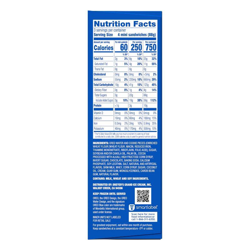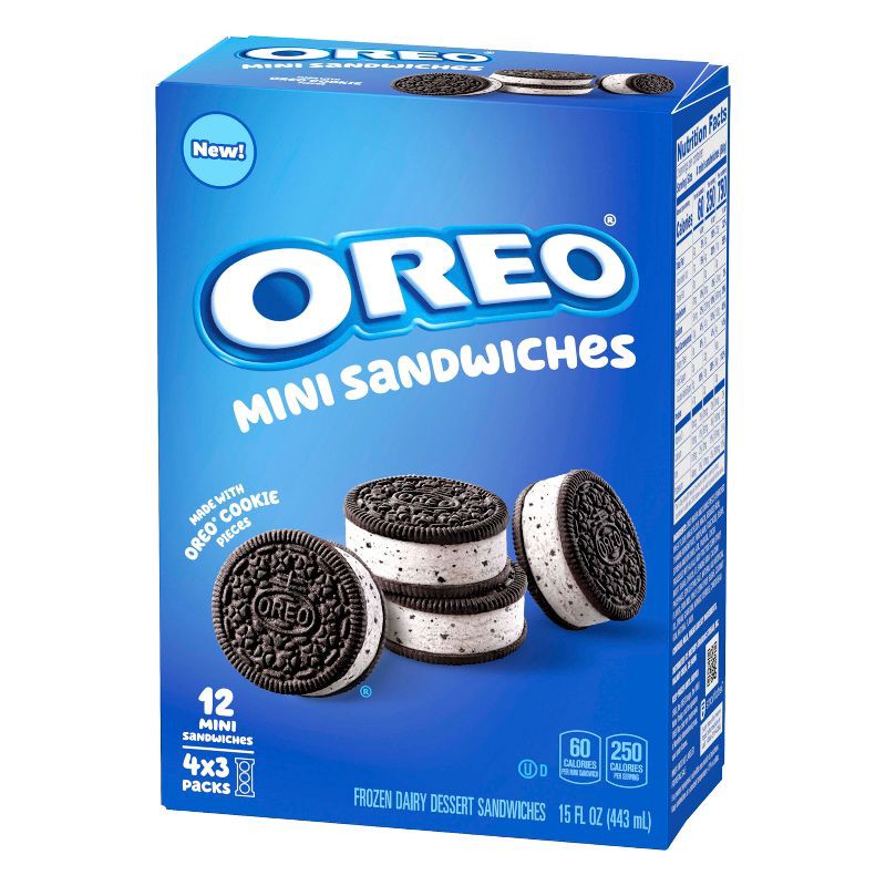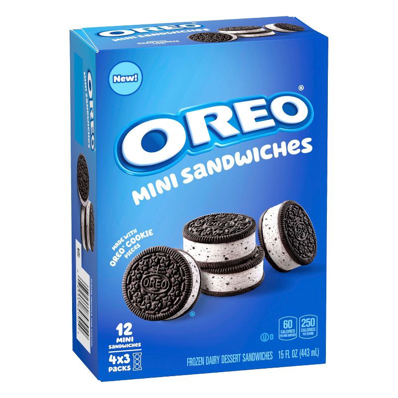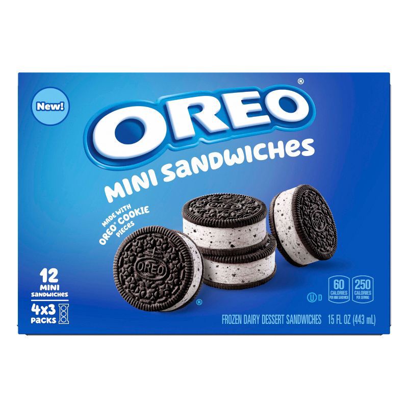 Ever put your OREO cookies in the freezer? Now we've made it even better for you! We use OREO wafers to sandwich creme-flavored frozen dairy dessert packed with OREO cookie pieces. They're so snackabl…