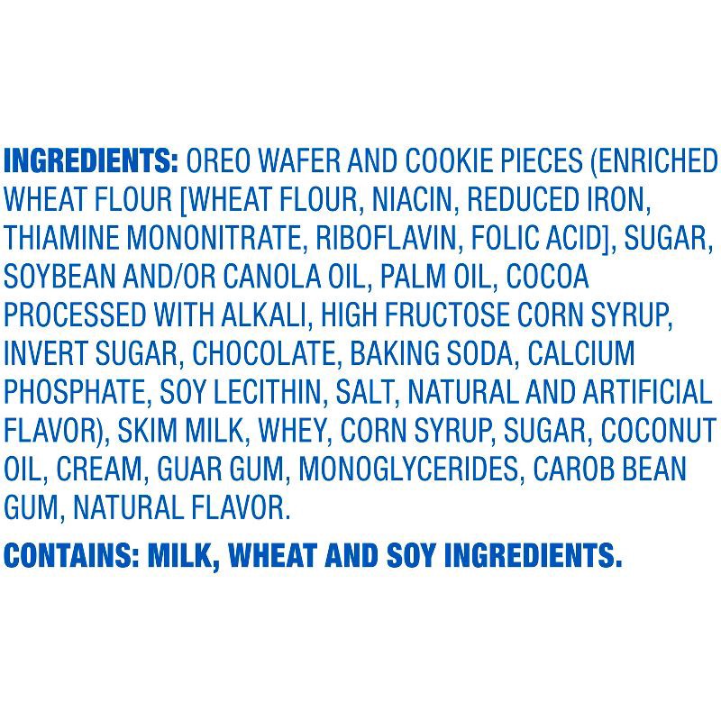 Oreo Wafer and Cookie Pieces (Enriched Wheat Flour [Wheat Flour, Niacin, Reduced Iron, Thiamine Mononitrate, Riboflavin, Folic Acid], Sugar, Soybean and/or Canola Oil, Palm Oil, Cocoa Processed with A…