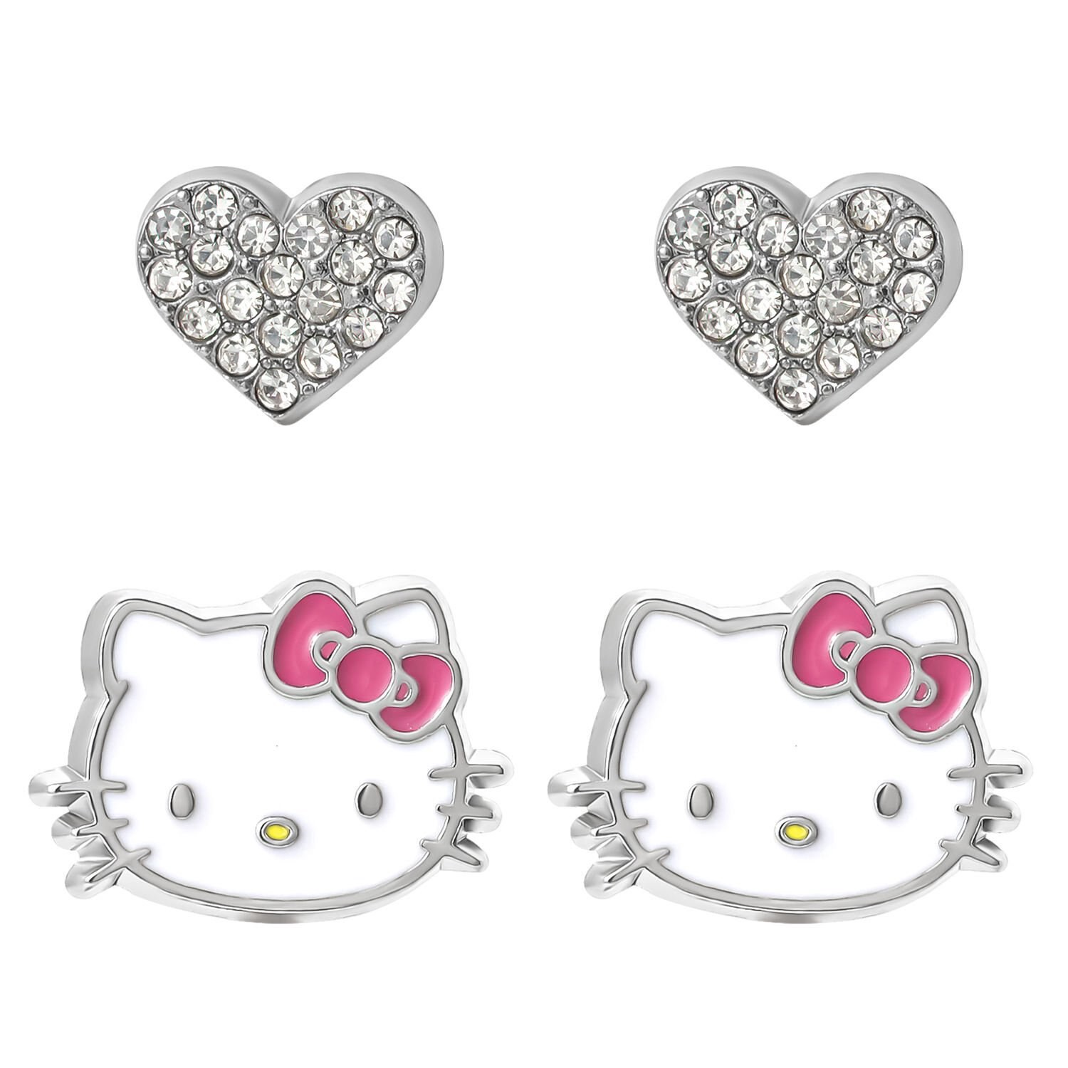 FASHION HELLO KITTY 2PR EARRING SET Adorable Hello Kitty 2PR earring set. Hello Kitty Stud Earrings for Women. 2-Pair Pack, Hello Kitty earrings and heart earrings.