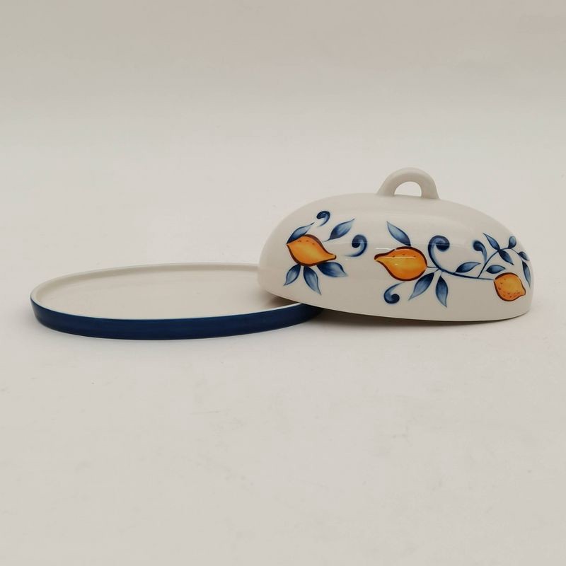 Keep salted butter fresh and within easy reach with this Muhoise Ceramic Butter Dish from Target™. The 2-piece set features a classic white dish with contrasting blue rim, crafted from durable ceramic…
