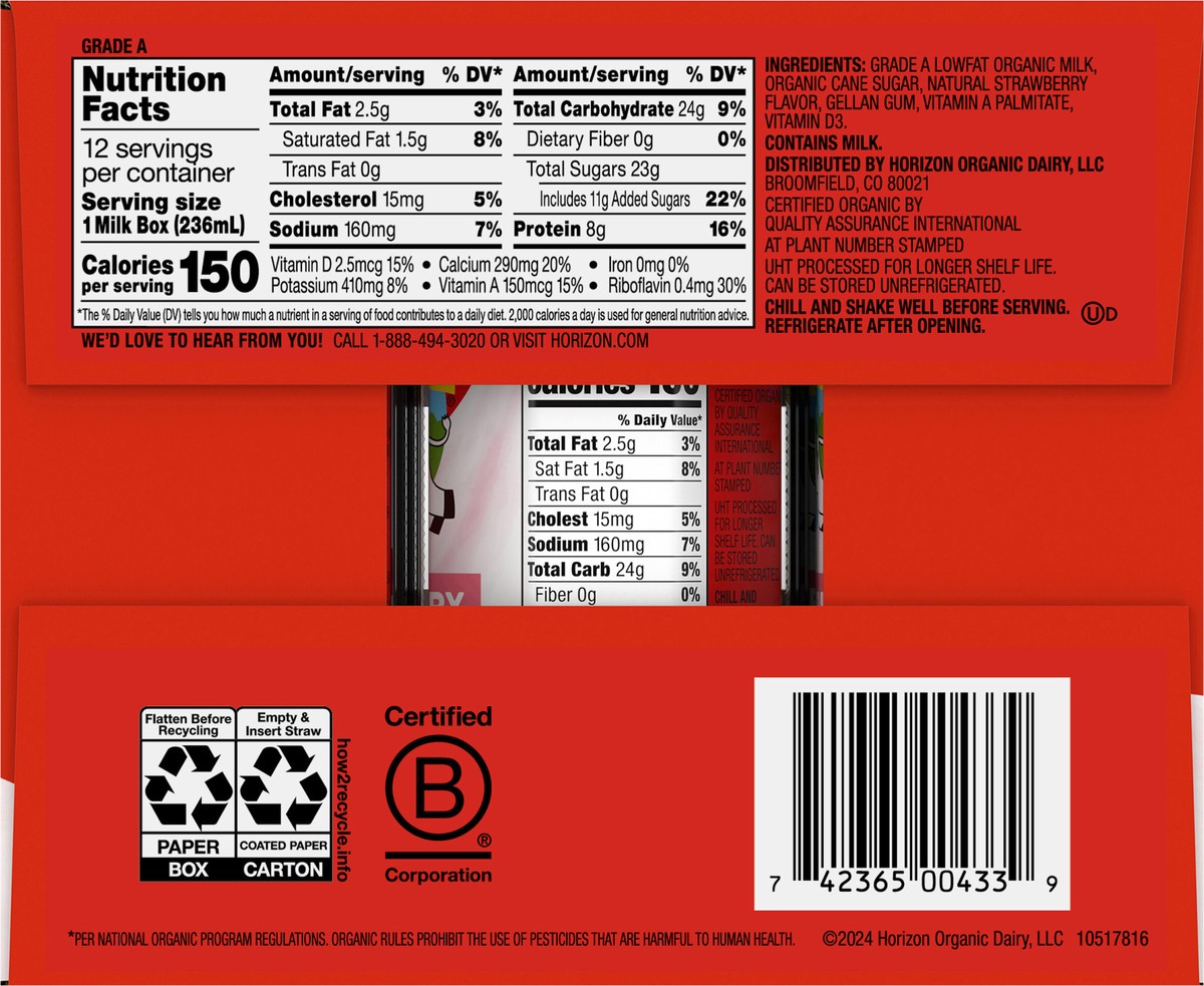 Horizon Organic Shelf-Stable 1% Lowfat Strawberry Milk Boxes - 12-8 Fl. Oz.