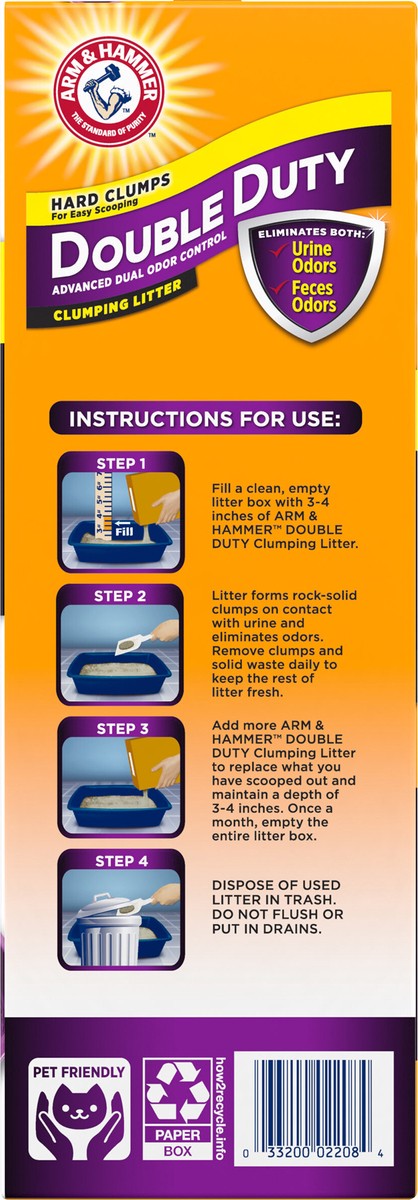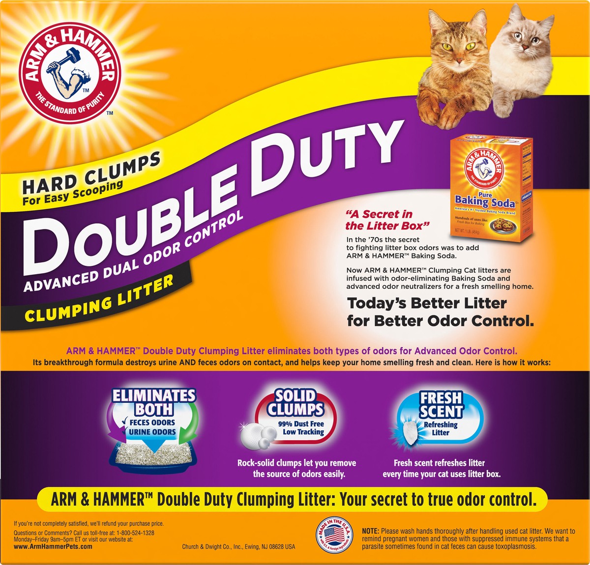 ARM & HAMMER Double Duty Clumping Cat Litter''s breakthrough formula destroys urine AND feces odors on contact for dual advanced odor control that helps your home stay fresh and clean. Hard clumps let…