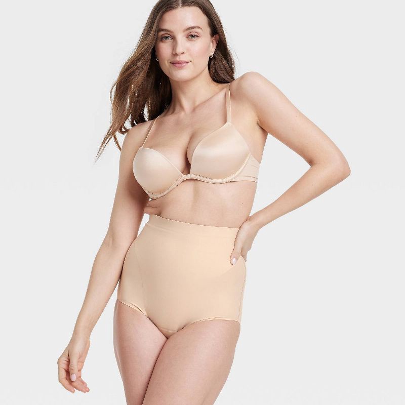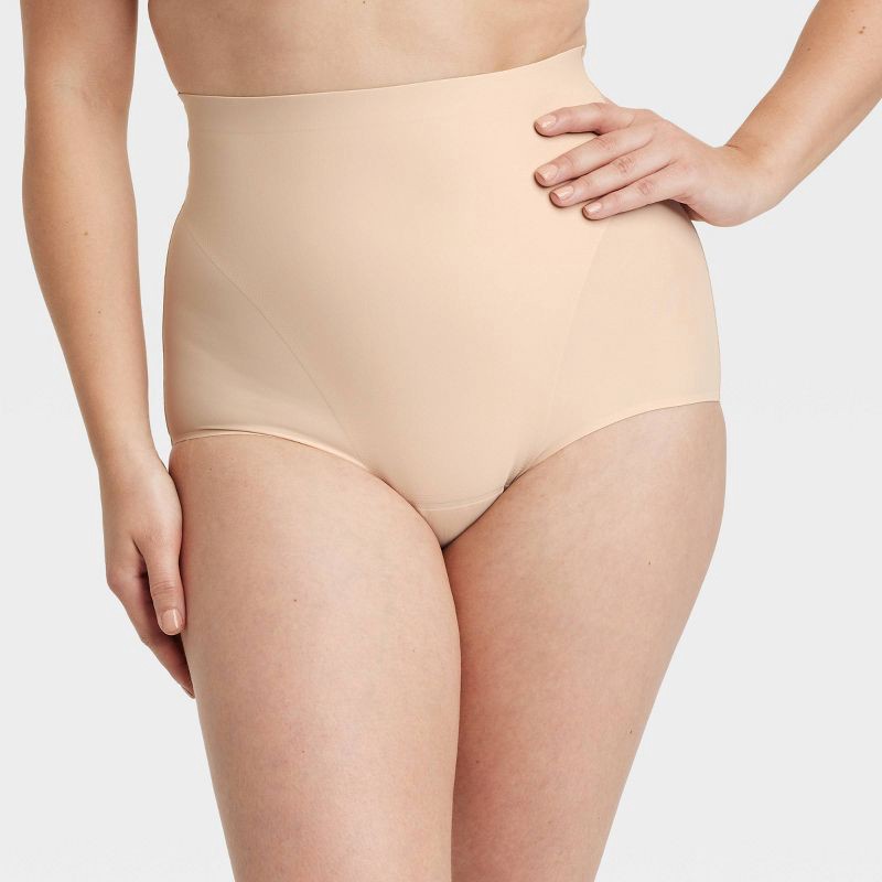 Women's Firm Sculpting High-Waist Briefs - Auden™ Soft Beige XS: Nylon Spandex Blend, Elastic Leg Openings