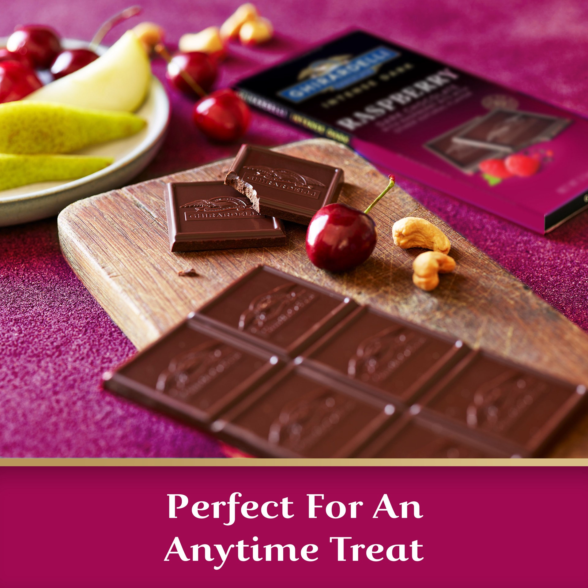 The GHIRARDELLI INTENSE DARK Raspberry Chocolate Bar is a combination of rich, bold intensely delicious dark chocolate with a pop of tangy raspberry. Each square melts slowly, revealing notes of cocoa…