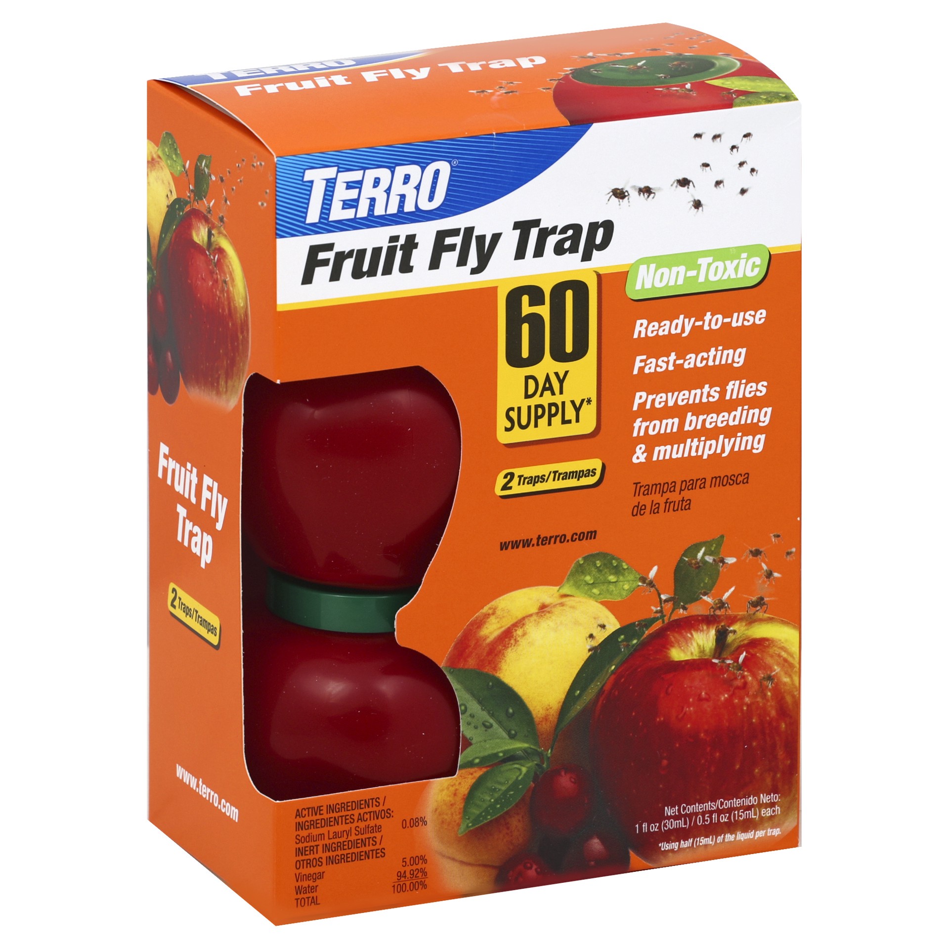Model No.: T2503. 60 day supply (Using half [15 ml] of the liquid per trap). Non-toxic. Ready-to-use. Fast-acting. Prevents flies from breeding & multiplying. Terro Fruit Fly Trap is designed to lure …