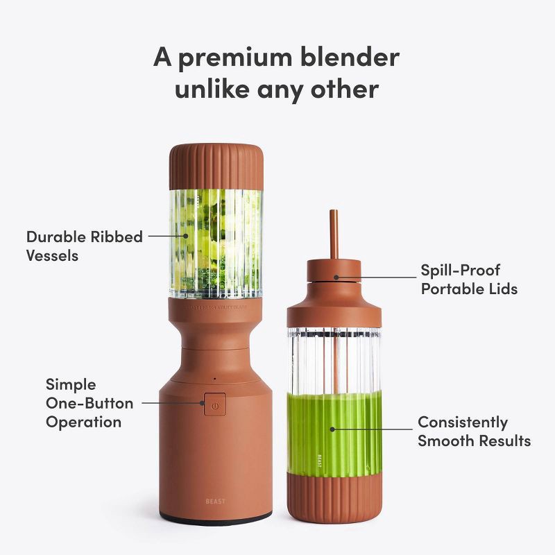 - Blend-Sip-Go: Your blending cup is also your drinking cup, with Beast's signature drinking lids and spill-proof straw system