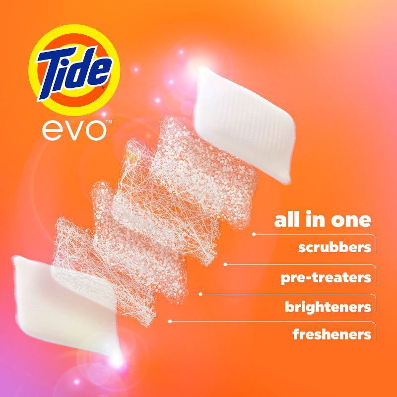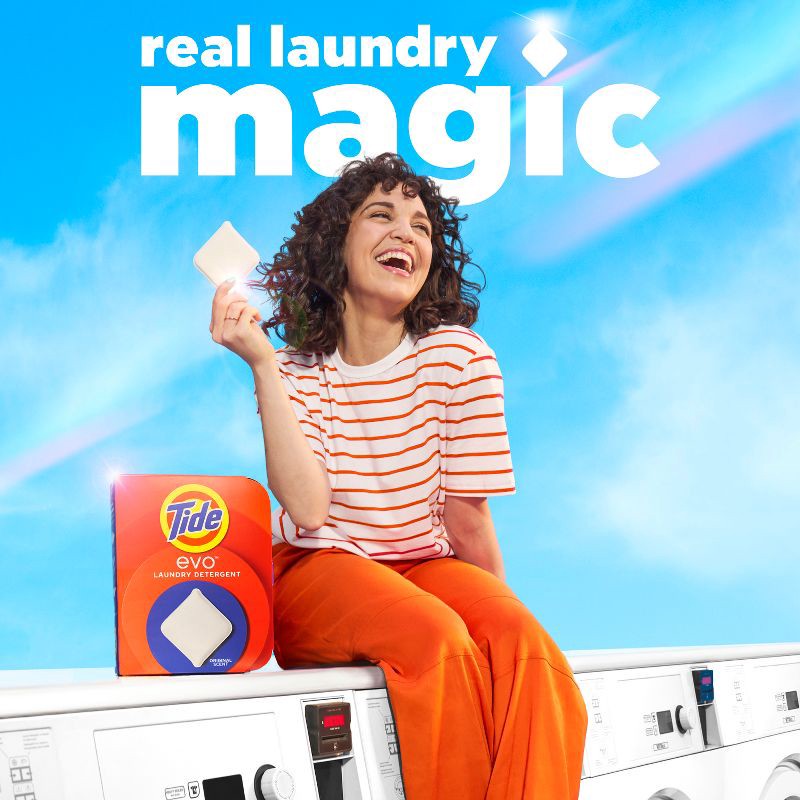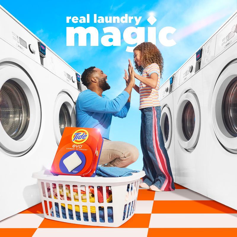 Experience Real Laundry Magic with Tide evo laundry detergent tiles. These powerful tiles tackle 100% of common stains including grass and dirt stains. Tide evo laundry tiles deliver long-lasting fres…
