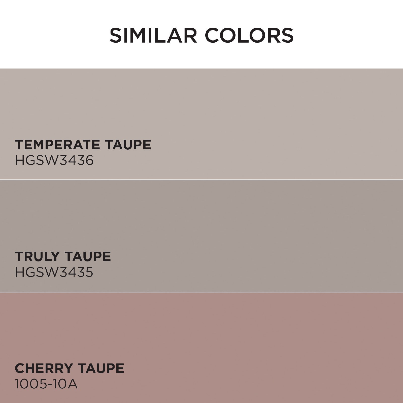 A true, medium taupe with soft, warm undertones. Eggshell finish is a versatile choice for most rooms, especially for spaces that may require frequent touchups. One-coat coverage. Colors stay true lon…
