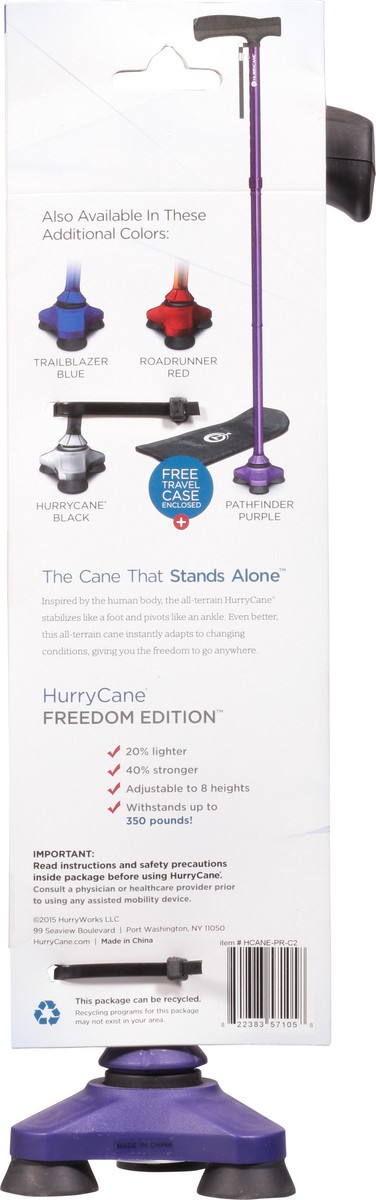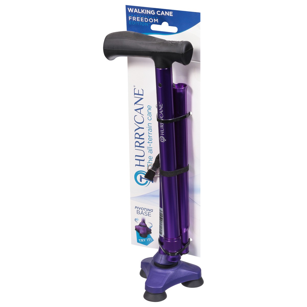 Pivoting base. Try it! The Cane That Stands Alone: Inspired by the human body, the all-terrain HurryCane stabilizes like a foot and pivots like an ankle. Even better, this all-terrain cane instantly a…