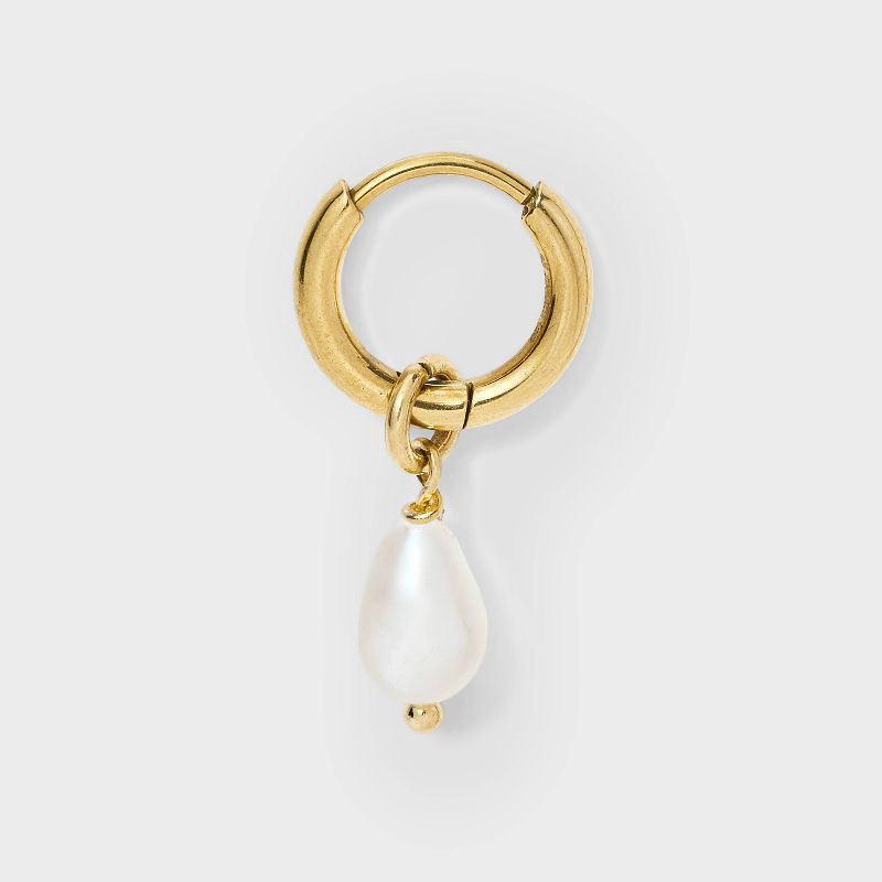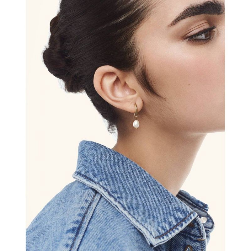 - Slim huggie hoops with pearl charm