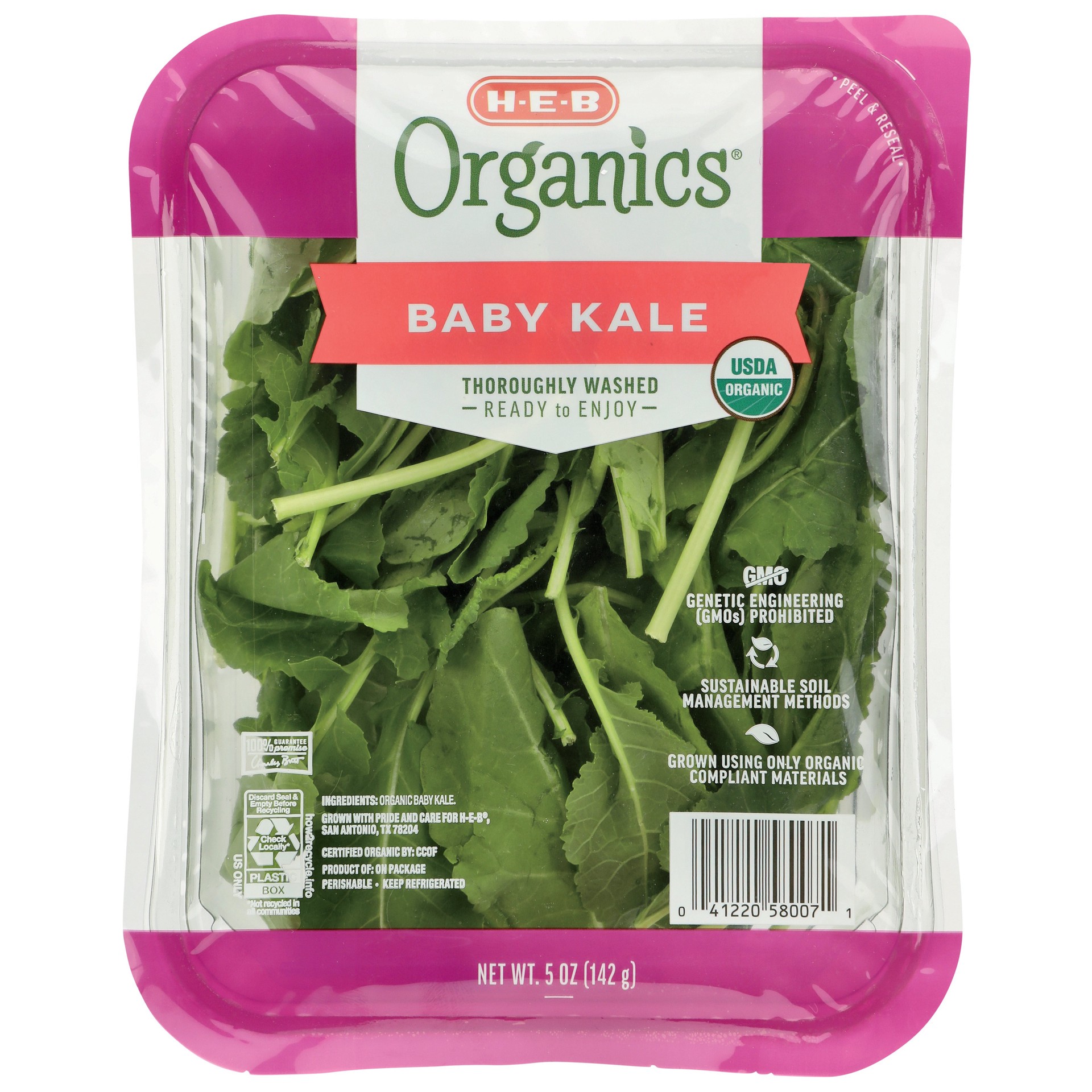 Thoroughly washed and ready to use, H-E-B Organics baby kale saves you time in the kitchen. Packed with a hearty, earthy flavor and a robust crispness, kale is also great sautéed with your favorite ar…