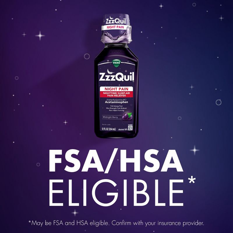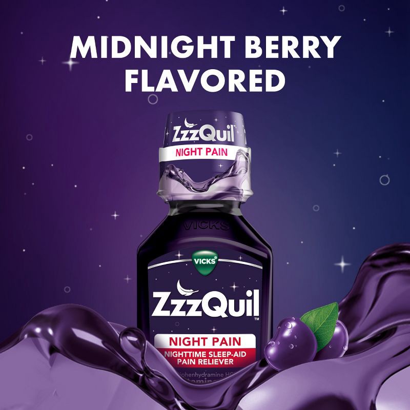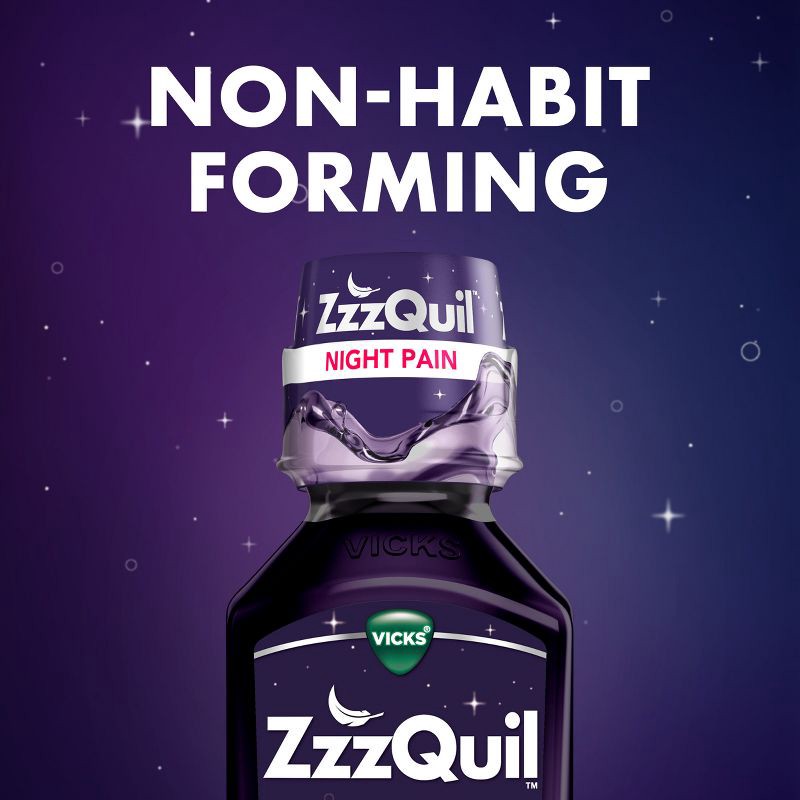 - SLEEP FOR WHEN PAIN KEEPS YOU UP: ZzzQuil Liquid Sleep Aid Night Pain is for the sound sleep you want and the pain relief you need