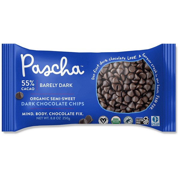Pascha Dark Chocolate Chips, Vegan, Organic, Semi-Sweet, 55% Cacao