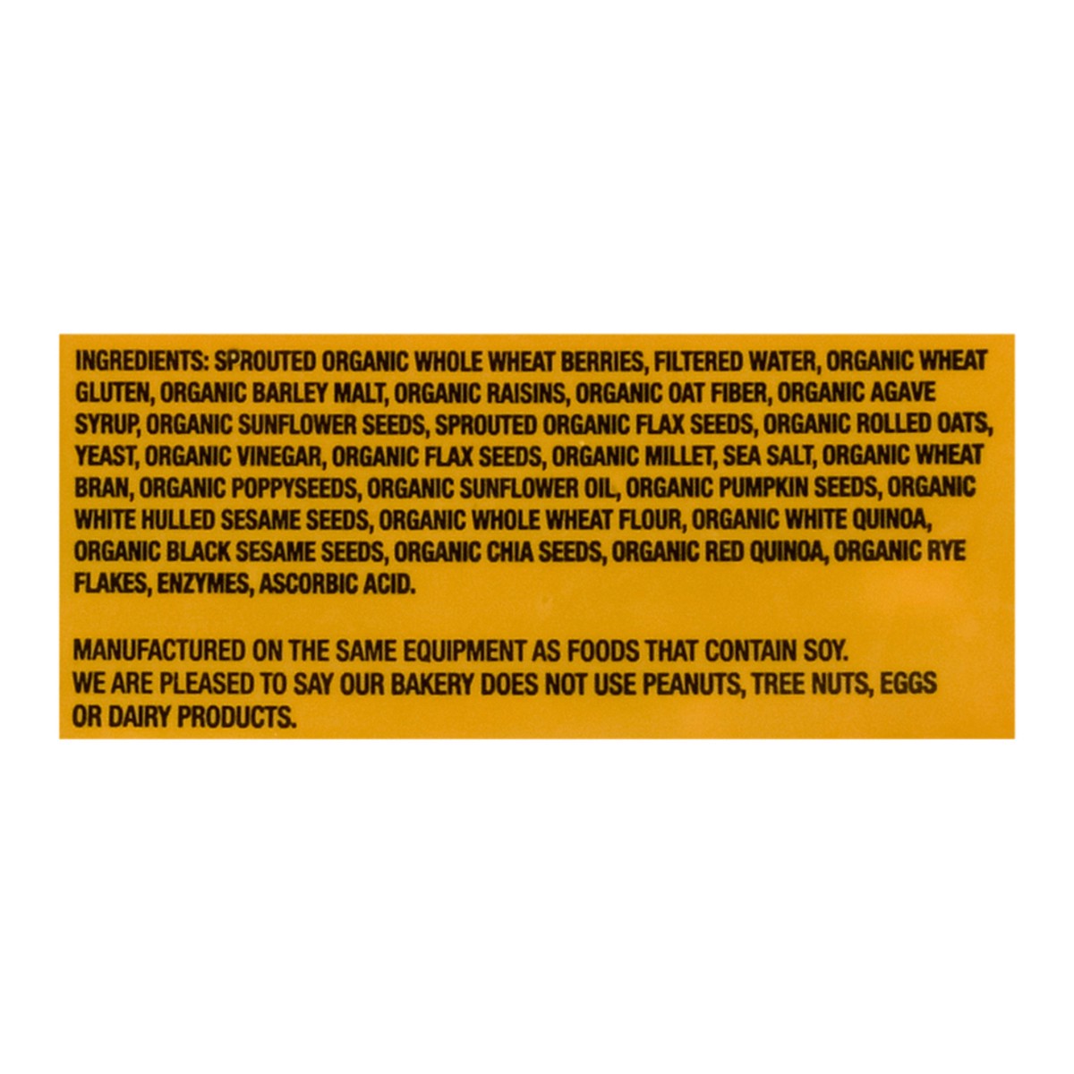 Sprouted Organic Whole Wheat Berries, Filtered Water, Organic Wheat Gluten, Organic Barley Malt, Organic Raisins, Organic Oat Fiber, Organic Agave Syrup, Organic Sunflower Seeds, Sprouted Organic Flax…